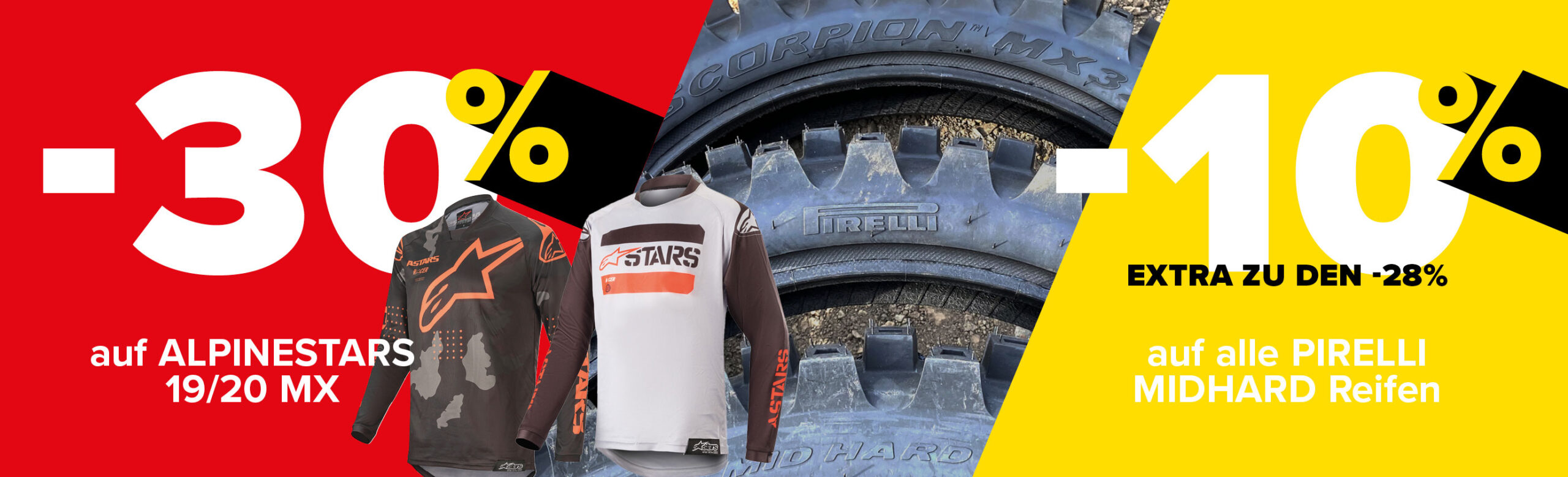 Ab sofort und nur online -30% Rabatt auf 19/20 MX Bekleidung von Alpinestars solange der Vorrat reicht. Also schnell zugreifen!