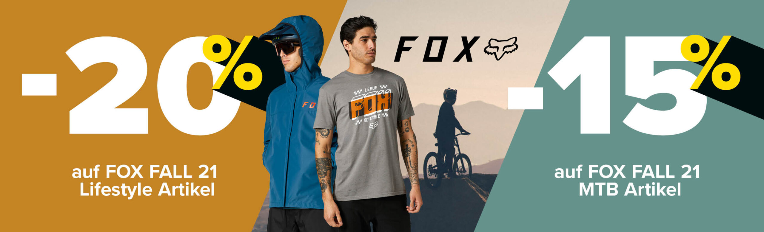 Ab sofort -20% Rabatt auf FOX FALL21 Lifestyle Artikel und -15% Rabatt auf FOX FALL21 MTB Artikel online und in den Stores!