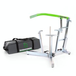 Der Reifenwechsel an einem Motorrad ist nicht gerade die Lieblingsbeschäftigung eines Fahrers. Aber Jakob und Tõnu, zwei Enduro-Freunde, haben es sich 2012 zur Aufgabe gemacht, den Reifenwechsel schneller und einfacher zu machen. Und so haben die beiden nach ein paar Versuchen ein Tool entwickelt, mit dem man in nur 3 Minuten die Reifen wechseln kann. Egal ob Luftschlauch, Tubeless oder Mousse, der Reifenwechsel dauert nicht länger als 3 Minuten. Der Rabaconda 3-Minute Tire Changer ist ein echter „Game Changer“. Der Tire Changer wird inzwischen in über 50 Ländern verkauft. Rabaconda hat es sich zur Aufgabe gemacht, die Ideen von Motorradfahrern in reale Produkte umzusetzen und diese Produkte dann der Motorradwelt zur Verfügung zu stellen. Fun Fact: Rabaconda ist ein mythisches oder möglicherweise sogar prähistorisches Schlangenwesen, das in der Nähe von Off-Road-Pisten auf allen von Menschen bewohnten Kontinenten lebt.