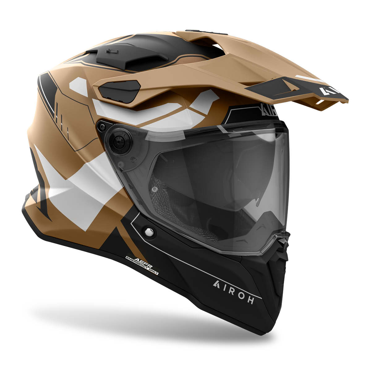 Der Nachfolger vom Bestseller Commander, der in 3 verschiedenen Versionen verwendet werden kann schreibt, mit seinem Update, die Spielregeln völlig neu! Drei unterschiedliche Schalen für eine komfortable Passform, erhältlich in Vollcarbon 6K oder Composite Carbon, mit einem ausgeklügelten Belüftungssystem, das direkt im Windkanal entwickelt und optimiert wurde. Zu den wichtigsten Innovationen gehören die ASN- (Airoh Sliding Net) und AEFR-Systeme (Airoh Emergency Fast Release), die die Sicherheit des Fahrers weiter erhöhen. Zu dem herausnehmbaren Coolmax-Innenfutter ist das Extra-Wide-Vision-Visier mit dem A3S (Airoh Automatic Antifog System) und Schloss-System ausgestattet und kann mit der beigelegten Pinlock 120 XLT Linse genutzt werden. Ob mit Schirm und Visier zur All-Road-Verwendung oder ohne Schirm und mit Visier zur Naked-/Straßenverwendung bietet der Helm für jegliche Situation Schutz und Komfort. ECE 2206 geprüft.