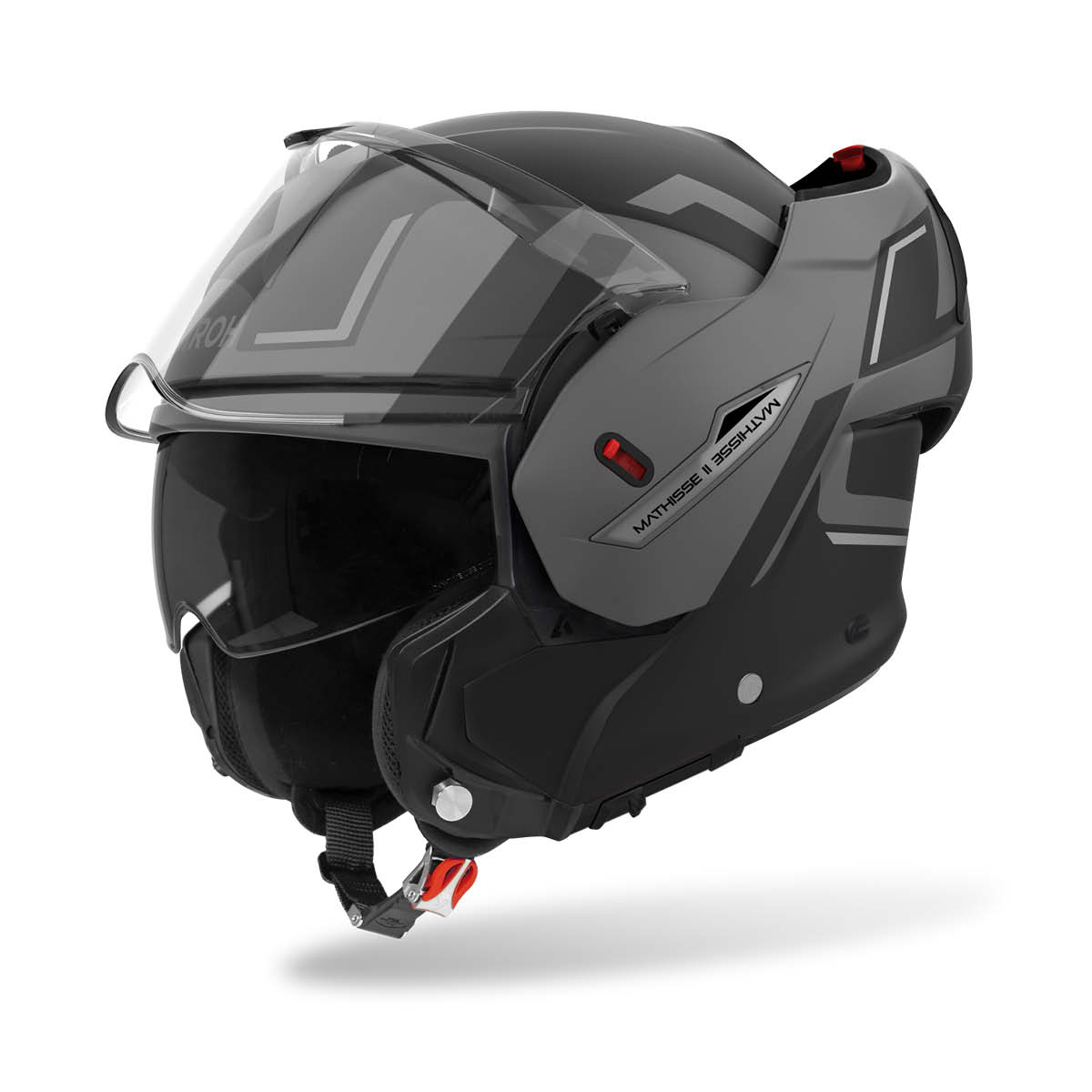 Der Airoh Connor Helm besteht aus einer Polycarbonat-Verbundschale. Geöffnet sowie Geschlossen wird der Helm mit einem Micro-Rastenverschluss. Wangen- und Kopfpolster sind herausnehmbar und waschbar. ECE 22.06 zugelassen, das Gewicht beträgt ca. 1450g.