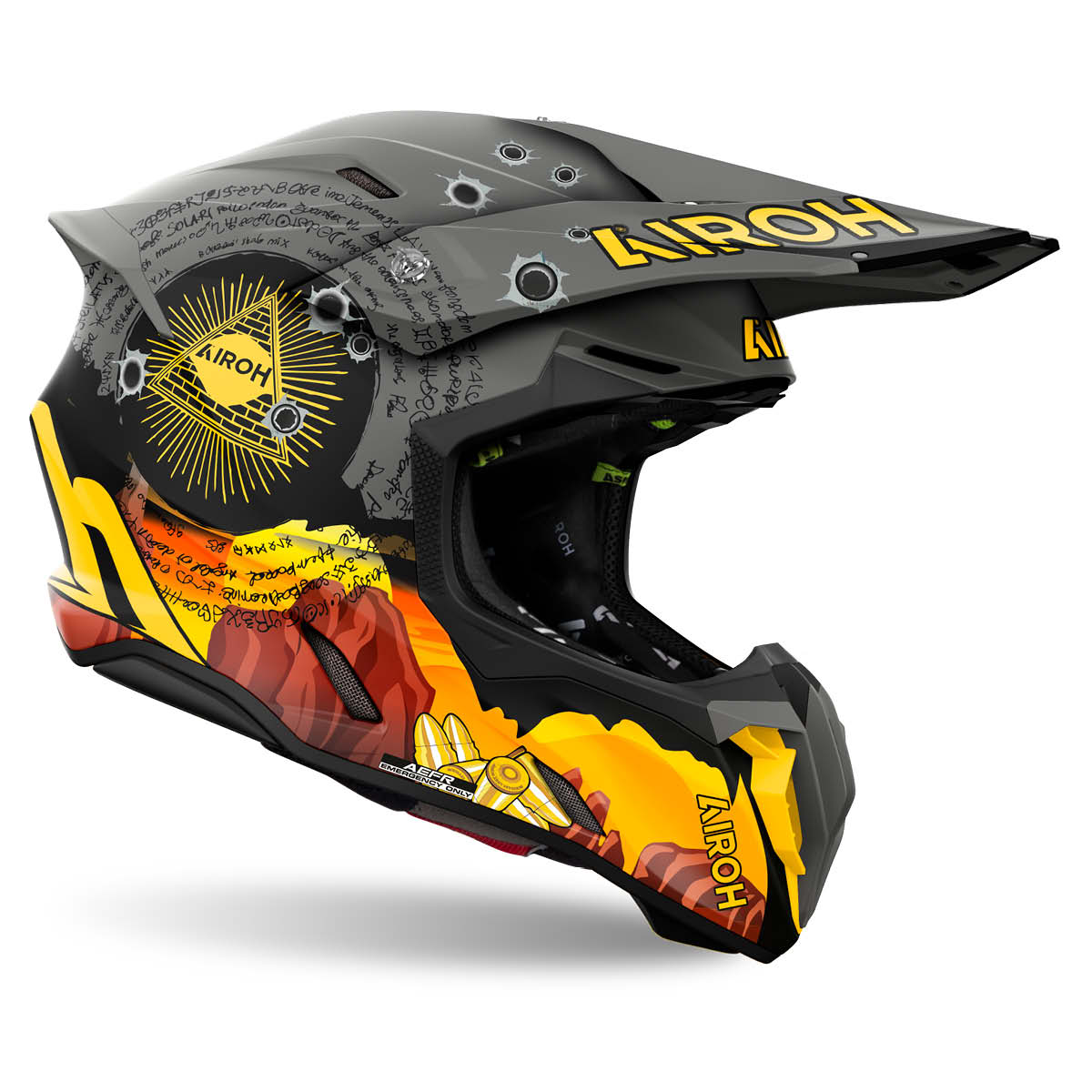 Die doppelte HRT Schale (High Resistant Thermoplastic) mit einem optimierten Belüftungssystem verbindet sich perfekt mit der ASN- (Airoh Sliding Net) und AEFR-Technik (Airoh Emergency Fast Release), sowie der Vorrüstung für den Einbau von Bluetooth-Kommunikationssystemen. Der Doppel-D-Verschluss hält den Helm sicher in seiner Position.