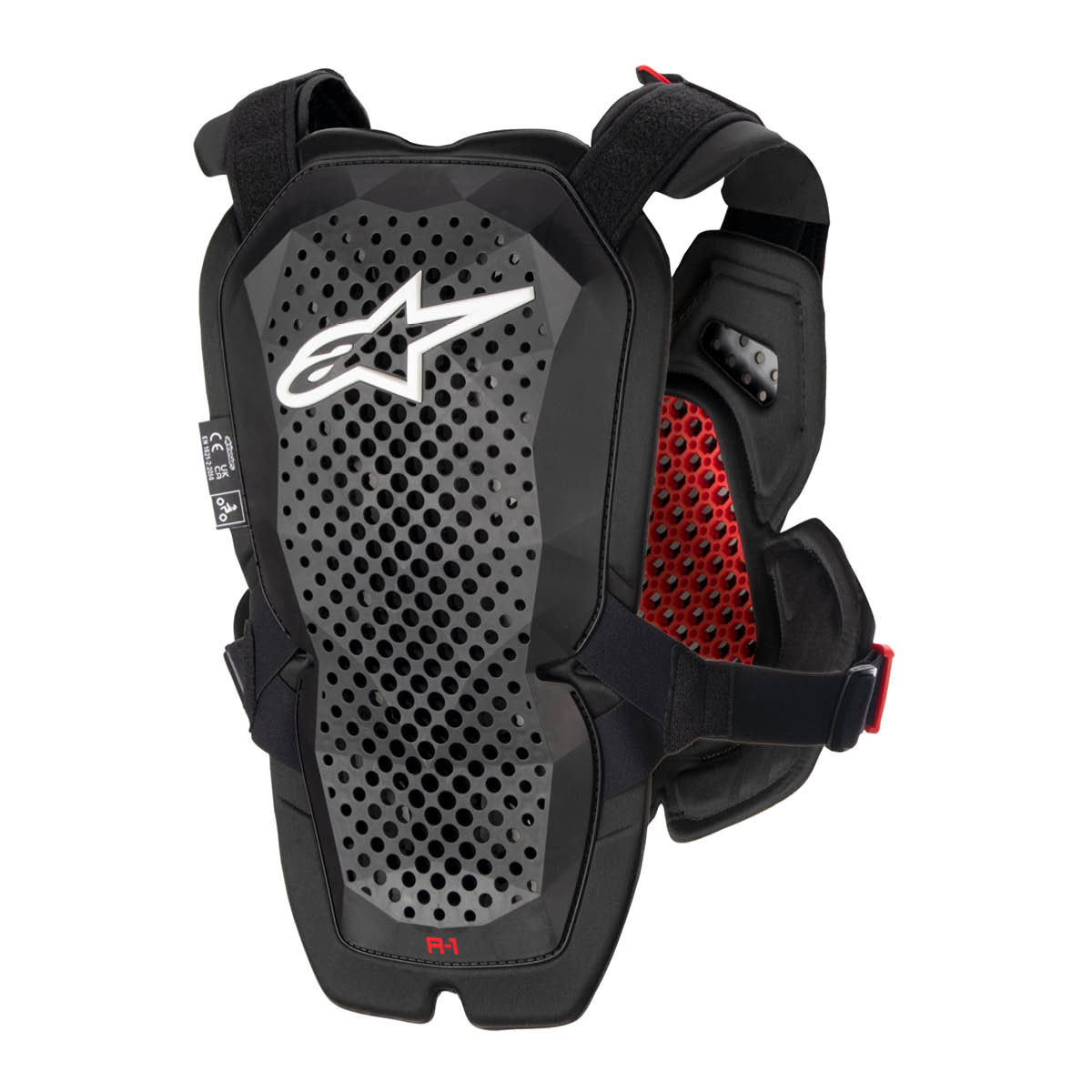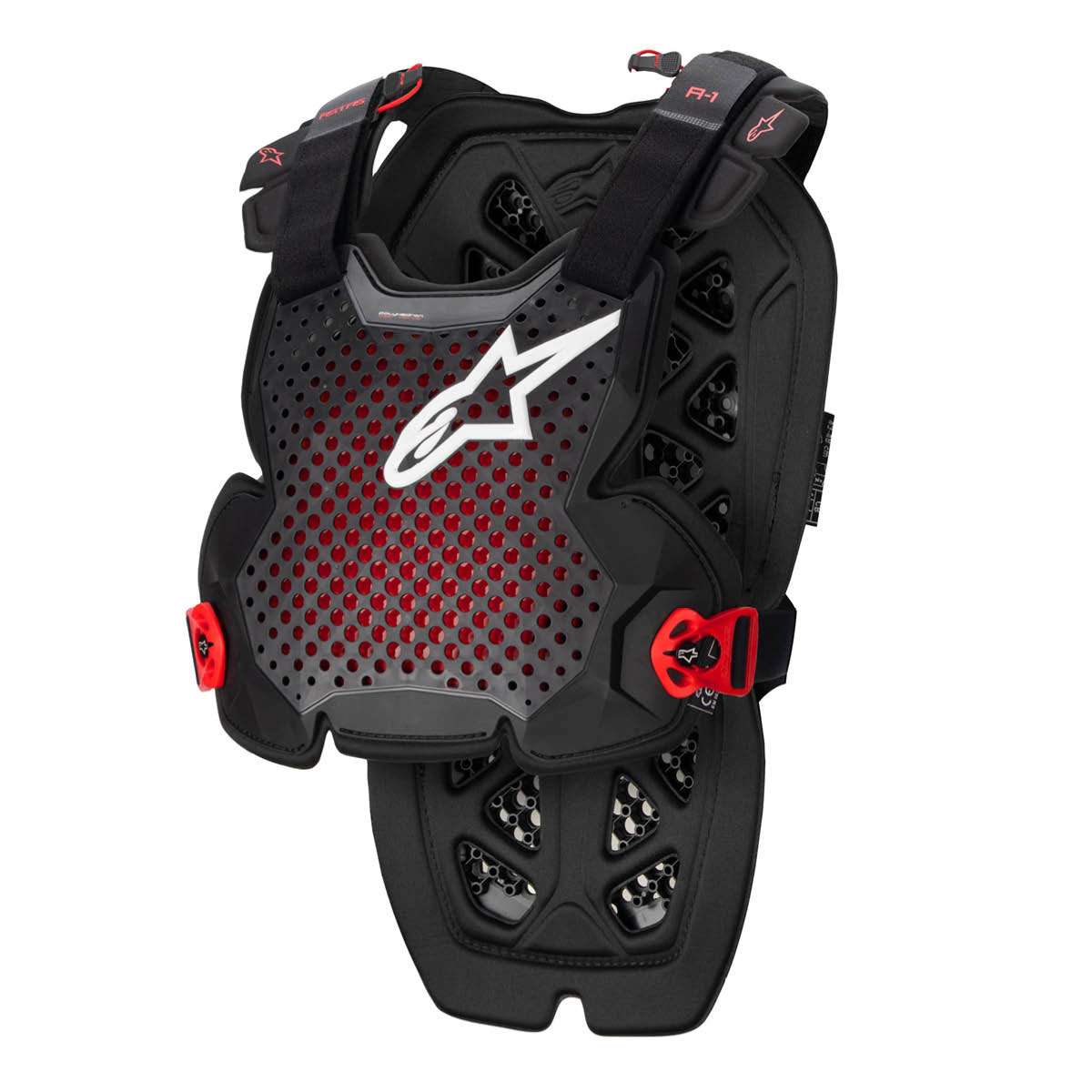 Der Alpinestars Brustpanzer A-1 verfügt über eine Level 1 CE zertifizierten Polyhedron Hybrid Technologie in der Brust und eine Polyhedron Technologie im Rückenprotektor, der ein unübertroffenes Maß an Belüftung bietet, superleicht ist und einen optimalen Schutz gegen Stöße bietet.