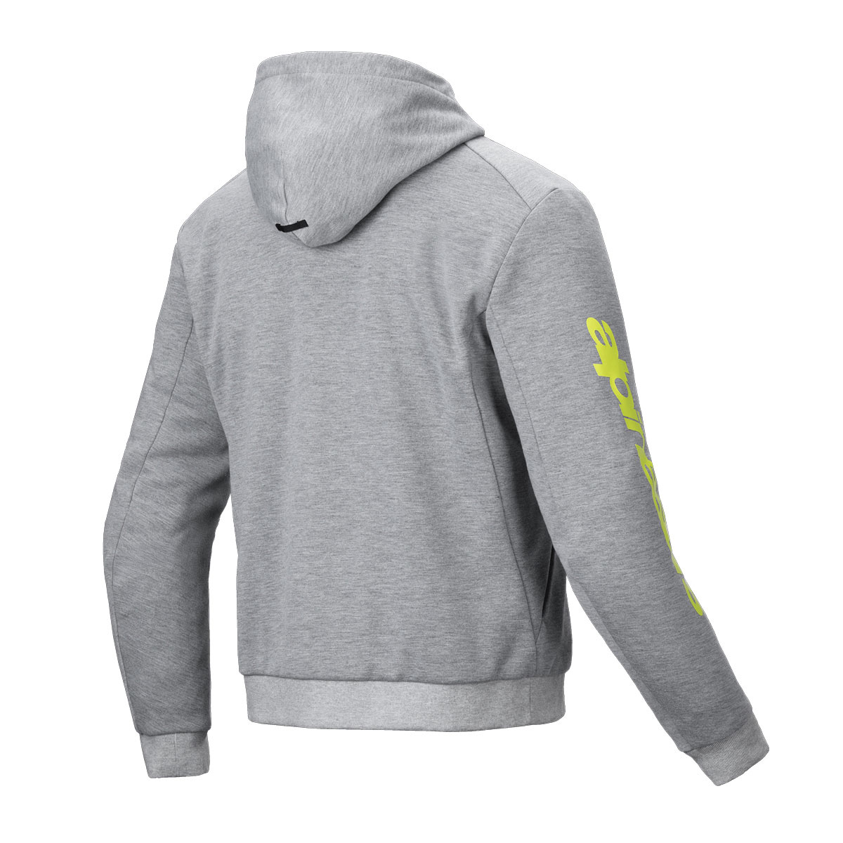 Der sportliche Hoodie von Alpinestars ist mit einer Kapuze, welche hinten einen Schnappverschluss hat, ausgestattet. Das Tech-Fleece Material mit einer optimalen Mischung aus Haltbarkeit, Komfort und geringen Gewicht trägt zu einem hohen Tragekomfort bei. Ebenso ist der Chrome V2 Hoodie mit Aramid Verstärkungen an Ellbogen und Schultern ausgestattet, um einen effektiven Schutz vor Abrieb zu bieten. Kleine Wertgegenstände können in den zwei Seitentaschen mit Reisverschluss verstaut werden. CE zertifiziert Klasse A.