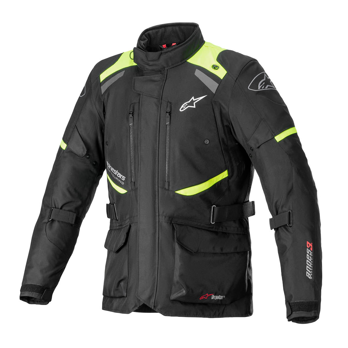 Die Alpinestars Jacke Andes V3 Drystar Jacke bietet eine wasserfeste Drystar Struktur und perfekte Belüftung, hohe Abriebfestigkeit, wasserfeste Fronttaschen, herausnehmbares langärmeliges Thermofutter