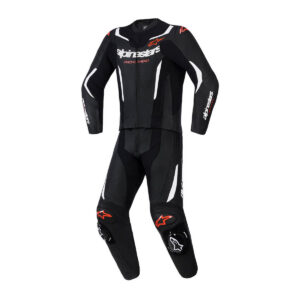 Der 2-Teilige Lederkombi von Alpinestars ist kompatibel mit dem TECH-AIR® 5 Airbag und eignet sich sowohl für den Einsatz mit als auch ohne das System. Die GP Force Chaser Kombi besteht aus Rindsleder und bietet eine hohe Stärke, Komfort und Abriebfestigkeit. Ausgestattet mit Protektoren an Ellbogen, Schulter, Knie und Schienbein sowie einen zusätzlichen Schulterprotektor für einen verbesserten Aufprallschutz. Ein Fach für einen optionalen Brustprotektor und innere Knieverstärkungen aus Wildleder sind ebenfalls vorhanden. Strategisch platzierte Stretch- und perforierte Ledereinsätze sorgen für eine gute Luftzirkulation und optimale Passform. Stretch-Einsätze an Bauch, Armen, Schritt und Beinen bieten zusätzlichen Komfort und Bewegungsfreiheit. Die Alpinestars Lederkombi ist mit einem Stretch-Panel am Rücken für optimalen Fahrkomfort ausgestattet und wird mit Hüftprotektoren geliefert. Das Stretch-Mesh-Innenfutter mit Multi-Panel-Konstruktion und 3D-Strukturgewebe am Kragen sorgt für eine bequeme Passform. Der aerodynamische Höcker sowie Wadenerweiterung mit Stretch-Rippen runden dieses Alpinestars Produkt ab. Vollständig CE-zertifizierte Schutzausrüstung gemäß dem Norm prEN 17092 der Klasse II – AA Klasse