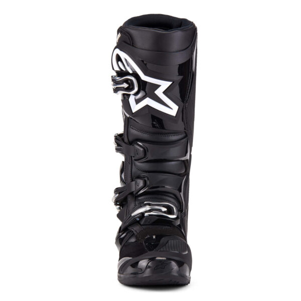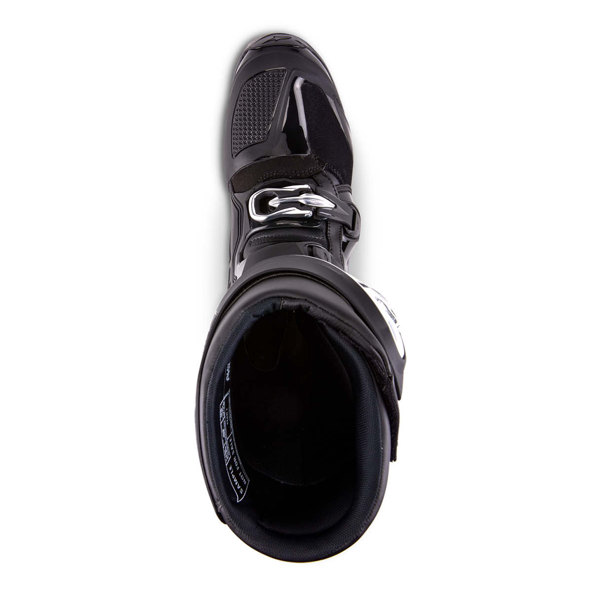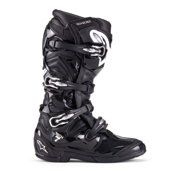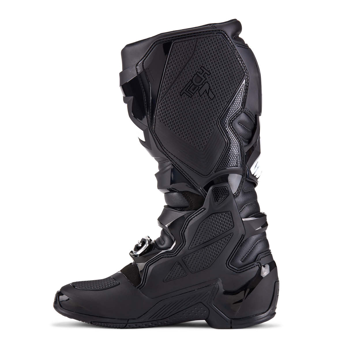 Der Tech 7 Motocross Stiefel wurde komplett überarbeitet, um ein noch besseres Fahrerlebnis zu bieten. Der Stiefel ist leichter, komfortabler und schützender als zuvor. Ein innovatives Design im Bereich des Schalthebels ermöglicht eine bessere Kontrolle, während ein Metallschaft im Zehenbereich Stoß- und Abriebfestigkeit bietet. Das Double-Pivot-System sorgt für Flexibilität und präzise Kontrolle. Durch ein Low Profile Pivot System im medialen und lateralen Knöchelbereich wird eine hohe Bewegungsfreiheit und Komfort gewährleistet. Stoßdämpfende Einsätze in der vorderen Faltenbalgzone bieten progressive Unterstützung. Die Schienbeinplatte und Knöchel sind mit stoßabsorbierender Polsterung geschützt. Die Sohle des Alpinestars Stiefels verfügt über einen Verschleißindikator, der anzeigt, wann die Sohle ausgetauscht werden muss. Die Struktur des Stiefels ist von einer Kevlar-Schicht umgeben, die die Integrität des Stiefels schützt. Der Tech 7 ist ein hochwertiger Offroad-Stiefel, der sowohl in Bezug auf Design als auch Funktionalität beeindruckt.