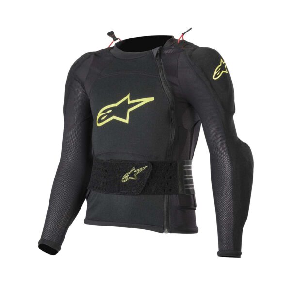 Dieses Protektorhemd ist mit CE-zertifizierten Protektoren für Rücken (EN1621-2:2014 Level 1), Brust (EN1621-3:2018 Level 1), Schultern und Ellbogen (EN1621-1:2012 Level 1) ausgestattet und bietet eine hohe Atmungsaktivität für den Komfort des Fahrers. Sie ist kompatibel mit dem Alpinestars Neckbrace und verfügt über einen verstellbaren elastischen Gürtel für einen sicheren Verschluss. Die Neckbrace-Zuglaschen aus Silikon erleichtern das anziehen. Der Rückenprotektor besteht aus einer leistungsstarken Polymer-Materialmischung, die optimierte Flexibilität und ein geringes Gewicht bietet. Die Brust-, Rücken-, Schulter- und Ellbogenprotektoren sind hochperforiert, um maximale Atmungsaktivität und Belüftung zu gewährleisten. Der ergonomische Rückenprotektor passt sich perfekt der natürlichen Krümmung des Rückens an und bietet während der Fahrt eine optimale Passform. Er ist aus einem hochleistungsfähigen Polymermaterial gefertigt.