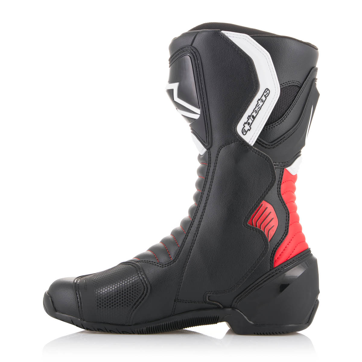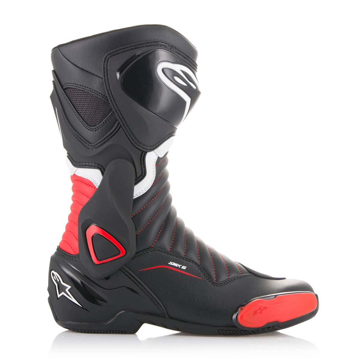 Der Alpinestars SMX 6 ist ein durchdacht konstruierter Racingstiefel hergestellt aus hochqualitativem und hochtechnologischem Material! Er ist ausgerüstet mit integrierten Protektoren für Schienbein, Ferse und Fuß sowie mit Schleifern, die den Fuß im Falle eines Unfalls gut schützen. Alpinestars einzigartiges Multi Link Control-System bietet fortgeschrittenen Schutz für das Fußgelenk und verhindert Beugungs-, Verdrehungs- und Überstreckungsverletzungen. Außerdem steigert es die Stoßdämpfung und Schlagfestigkeit des Stiefels. Ergonomisch-optimierter TPU Schienbeinprotektor, TPR Spunggelenksstütze, TPU Knöchelprotektoren, atmungsaktives Textilfutter, austauschbare TPU Slider, komfortabler seitlicher Reißverschluss, Dual Compound Fußbett, CE-geprüft EN13634.“