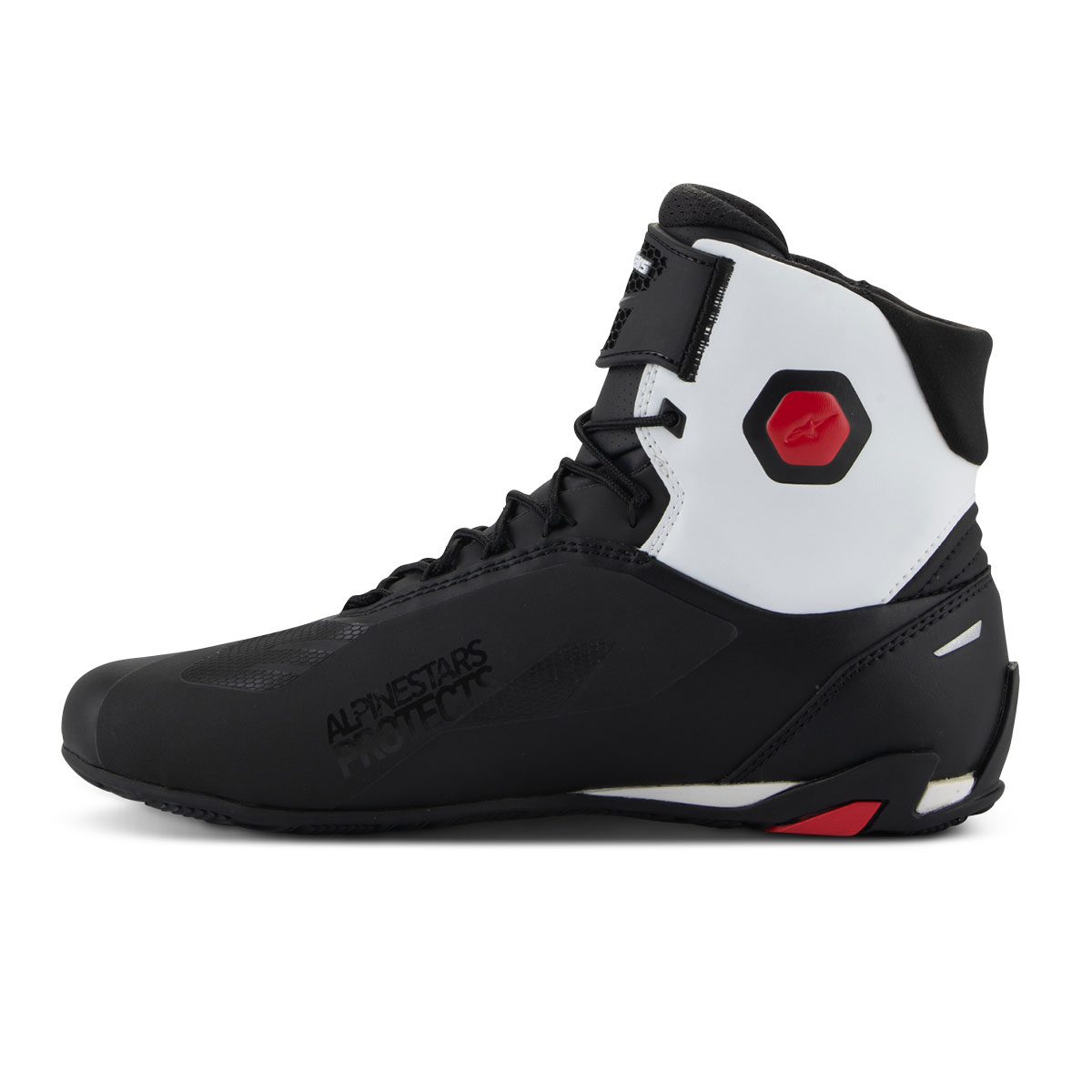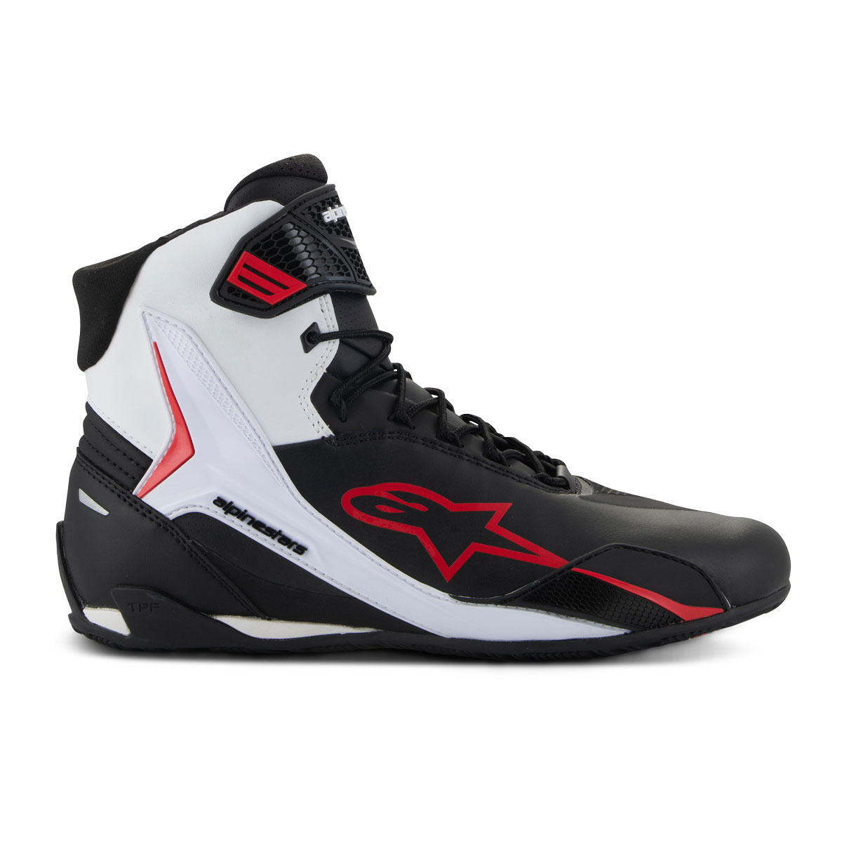 Der Faster-4 von Alpinestars verfügt über neue Leistungsinnovationen, die auf jahrzehntelangen Forschungs- und Entwicklungserfahrungen auf höchstem Niveau des Motorsports basieren. Er ist leicht und verfügt über erstklassige Schutzfunktionen sowohl innen als auch außen. Das Obermaterial besteht aus extrem leichten, widerstandsfähigen und abriebfesten Mikrofaser. Der Verstärkter TPU-Knöchel, der im unteren Seitenbereich verlängert wird, erhöht die Unterstützung und den Schutz. Die seitlichen TPR-Schleiferdetails sorgen für mehr Flexibilität und Schutz. Das TPR-Fersenkappen-Design sorgt für zusätzlichen seitlichen Halt und Sicherheit. Für eine einfache, sichere und bequeme Passform sorgt das traditionelles Schnürsystem. Dank des seitlich verstellbaren Klettverschlusssystems mit TPR-Riemen sitzt der Schuh immer Passgenau. Durch die Laschen- und Kragenpolsterung bietet der Alpinestars Schuh einen hohen Komfort und eine hervorragende Passform um den Knöchel und den Rist. Die Fersenkappenverstärkung ist für ein ergonomischeres Design unter dem Obermaterial angeordnet. Ein 3D-Mesh-Futter trägt für hohe Atmungsaktivität bei, während das Micro-Wildleder an der Ferse rutschfest ist. Die extrem leichte, speziell zusammengesetzte Gummisohle bietet strukturierten Halt, hervorragende Dämpfung und einen integrierten Stützschaft für erhöhte Sohlensteifigkeit. CE geprüft EN13634:2017.