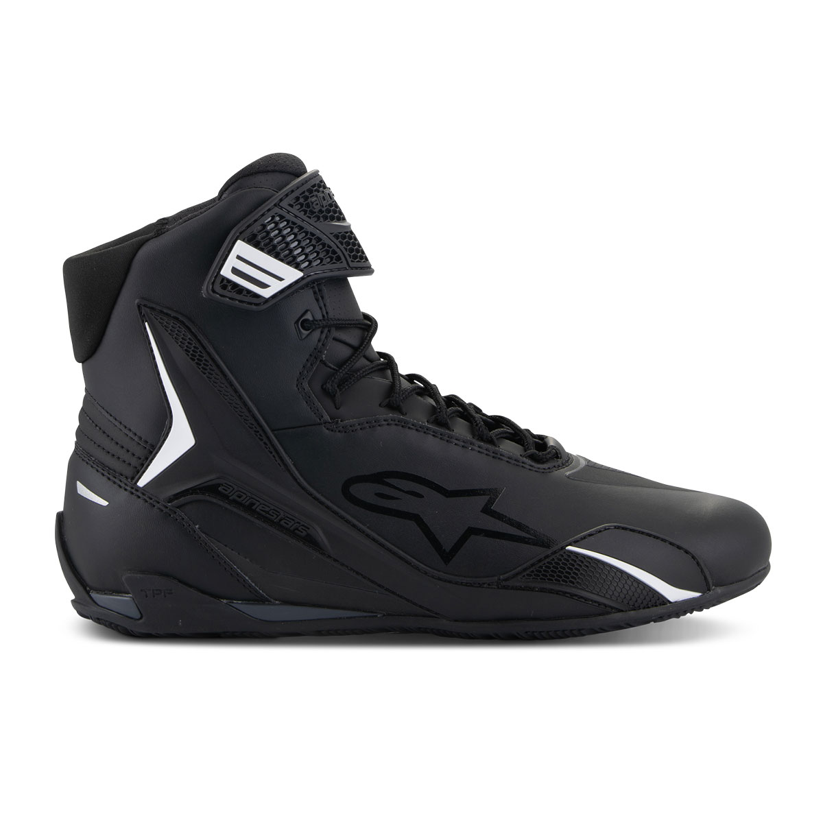 Der Faster-4 von Alpinestars verfügt über neue Leistungsinnovationen, die auf jahrzehntelangen Forschungs- und Entwicklungserfahrungen auf höchstem Niveau des Motorsports basieren. Er ist leicht und verfügt über erstklassige Schutzfunktionen sowohl innen als auch außen. Das Obermaterial besteht aus extrem leichten, widerstandsfähigen und abriebfesten Mikrofaser. Der Verstärkter TPU-Knöchel, der im unteren Seitenbereich verlängert wird, erhöht die Unterstützung und den Schutz. Die seitlichen TPR-Schleiferdetails sorgen für mehr Flexibilität und Schutz. Das TPR-Fersenkappen-Design sorgt für zusätzlichen seitlichen Halt und Sicherheit. Für eine einfache, sichere und bequeme Passform sorgt das traditionelles Schnürsystem. Dank des seitlich verstellbaren Klettverschlusssystems mit TPR-Riemen sitzt der Schuh immer Passgenau. Durch die Laschen- und Kragenpolsterung bietet der Alpinestars Schuh einen hohen Komfort und eine hervorragende Passform um den Knöchel und den Rist. Die Fersenkappenverstärkung ist für ein ergonomischeres Design unter dem Obermaterial angeordnet. Ein 3D-Mesh-Futter trägt für hohe Atmungsaktivität bei, während das Micro-Wildleder an der Ferse rutschfest ist. Die extrem leichte, speziell zusammengesetzte Gummisohle bietet strukturierten Halt, hervorragende Dämpfung und einen integrierten Stützschaft für erhöhte Sohlensteifigkeit. CE geprüft EN13634:2017.