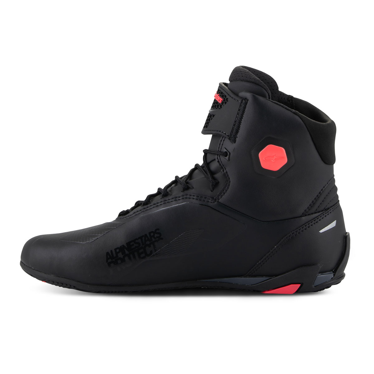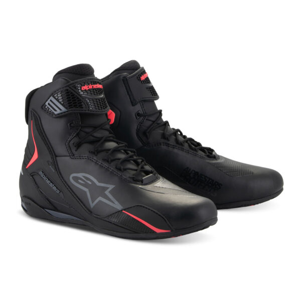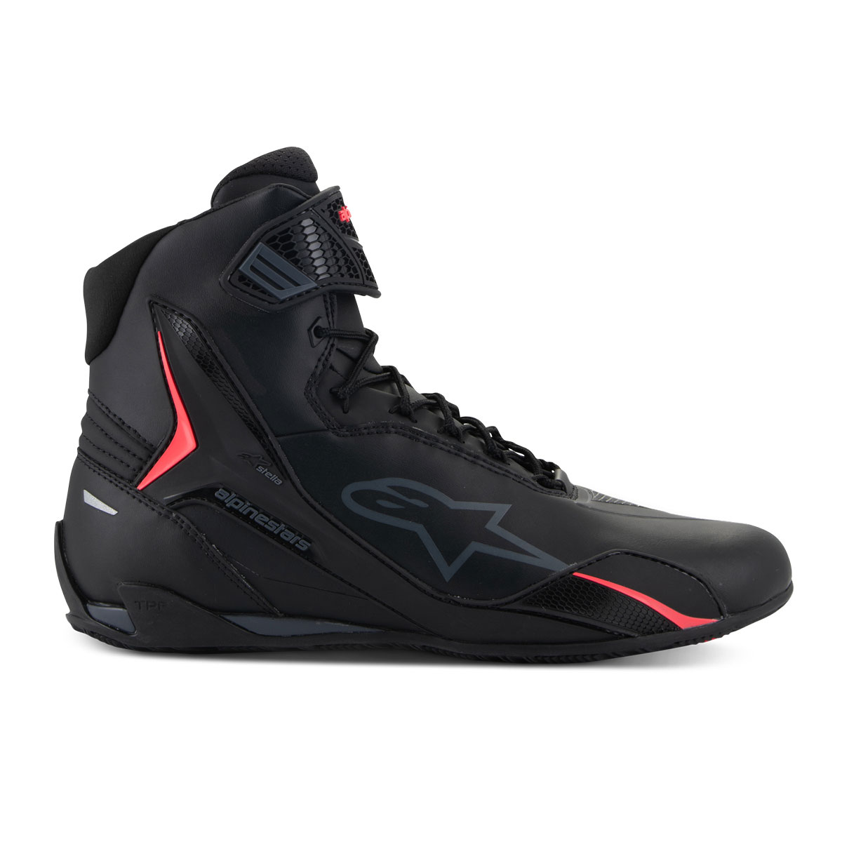 Der Faster-4 von Alpinestars verfügt über neue Leistungsinnovationen, die auf jahrzehntelangen Forschungs- und Entwicklungserfahrungen auf höchstem Niveau des Motorsports basieren. Er ist leicht und verfügt über erstklassige Schutzfunktionen sowohl innen als auch außen. Das Obermaterial besteht aus extrem leichten, widerstandsfähigen und abriebfesten Mikrofaser. Der Verstärkter TPU-Knöchel, der im unteren Seitenbereich verlängert wird, erhöht die Unterstützung und den Schutz. Die seitlichen TPR-Schleiferdetails sorgen für mehr Flexibilität und Schutz. Das TPR-Fersenkappen-Design sorgt für zusätzlichen seitlichen Halt und Sicherheit. Für eine einfache, sichere und bequeme Passform sorgt das traditionelles Schnürsystem. Dank des seitlich verstellbaren Klettverschlusssystems mit TPR-Riemen sitzt der Schuh immer Passgenau. Durch die Laschen- und Kragenpolsterung bietet der Alpinestars Schuh einen hohen Komfort und eine hervorragende Passform um den Knöchel und den Rist. Die Fersenkappenverstärkung ist für ein ergonomischeres Design unter dem Obermaterial angeordnet. Ein 3D-Mesh-Futter trägt für hohe Atmungsaktivität bei, während das Micro-Wildleder an der Ferse rutschfest ist. Die extrem leichte, speziell zusammengesetzte Gummisohle bietet strukturierten Halt, hervorragende Dämpfung und einen integrierten Stützschaft für erhöhte Sohlensteifigkeit. CE geprüft EN13634:2017.