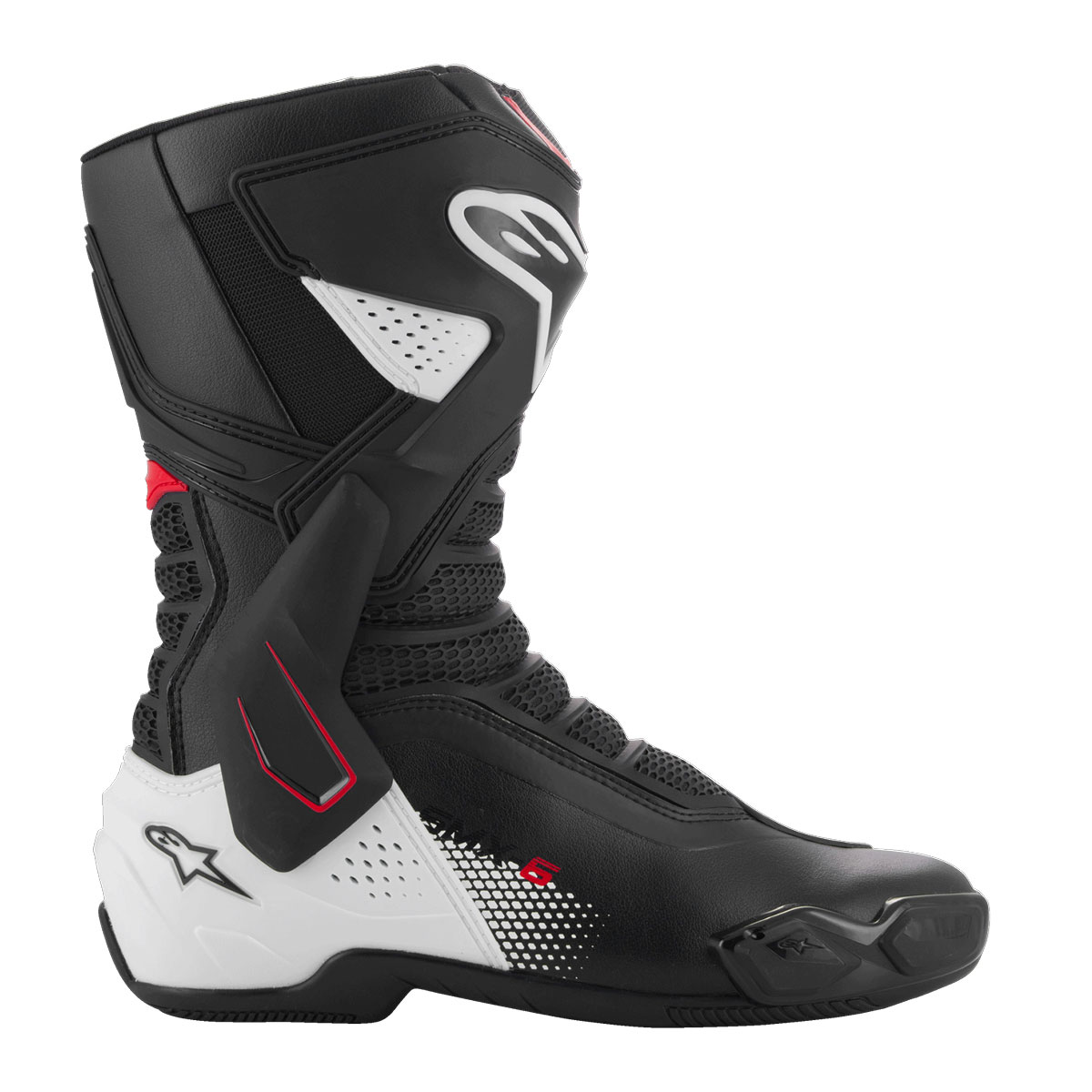 Die SMX-6 V3 Stiefel sind eine neue Generation von Hochleistungsrennstiefeln, die sowohl auf der Straße als auch auf der Rennstrecke eingesetzt werden können. Mit zahlreichen innovativen Sicherheits- und Schutzfunktionen bieten sie Fahrern einen entscheidenden Vorteil in Bezug auf Leistung und Komfort. Der neu gestaltete Schaft passt sich optimal den anatomischen Konturen des Fußes an und bietet eine verbesserte Flexibilität und Laufkomfort. Jedes Detail des Stiefels wurde sorgfältig entwickelt, einschließlich neuartiger Schutzinnovationen, verbesserter Ergonomie und Komfortmerkmale. Das Obermaterial besteht aus weichem, eingespritztem PPU, das auf 3D-Mesh gespritzt wird und von der Rennerfahrung und Technologie von Alpinestars inspiriert ist. Der Stiefel verfügt über seitliche TPU-Knöchelschützer. Insgesamt sind die SMX-6 V3 Stiefel die perfekte Wahl für anspruchsvolle Straßenfahrer, die Wert auf Sicherheit und Leistung legen.