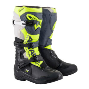 Der Tech 10 von Alpinestars gilt seit über einem Jahrzehnt als Standard für Leistung und Schutz von Motocross Stiefeln. Das Unternehmen legt großen Wert auf Produktentwicklung und Innovation, um den Leistungsrahmen ständig zu verbessern. Die wichtigste Errungenschaft des Tech 10 ist ein größerer Bewegungsbereich und Flexibilität, was eine bessere Kontrolle über Flexions- und Torsionskräfte ermöglicht. Dadurch verbessert sich die Leistung des Stiefels erheblich und der Fahrer erhält mehr Vertrauen und Schutz. Neben seinem Leistungspotenzial bietet der Tech 10 auch eine Reihe von technologischen Neuerungen. Dazu gehört der Frontal Flexion Control Frame, der asymmetrische Dual-Pivot Arm und der hinter indizierten Schutz für den Knöchel. Diese Technologien sorgen dafür, dass der Stiefel den Anforderungen von Motocross Fahrern gerecht wird und in allen Fahrbedingungen optimalen Komfort und Schutz bietet. Der Tech 10 ist nicht nur ein Fußschutz, sondern ein leistungsfähiges Werkzeug für Motocross Fahrer, um ihr Bestes zu geben. Er bietet den Fahrern die Möglichkeit, alle Arten von Fahrbedingungen zu meistern und gleichzeitig den Komfort zu gewährleisten. Der Stiefel besteht aus leichter Mikrofaser und einer stoß- und abriebfesten TPU-Schale. Die Fußschale des Stiefels ist aus fünf verschiedenen Verbindungen hergestellt, um Stärke, Flexibilität und strukturelle Integrität zu gewährleisten. Sie bietet zudem einen abrieb- und stoßfesten Fersen- und Zehenschutz für eine erhöhte Haltbarkeit. Darüber hinaus verfügt der Alpinestars Stiefel über einen integrierten Schaft, der für Halt und Stabilität sorgt. Der Frontschutz des Stiefels verfügt über ein duales Verschlusssystem für einen passgenauen Verschluss und Mikrofaserklappen, um das Eindringen von Wasser und Schmutz zu verhindern. Das Innenfutter des Stiefels besteht aus Polygewebe mit offenporigem 3D-Schaum und rutschfestem Wildleder im Fersenbereich, um den Fuß im Stiefel zu halten. Insgesamt ist der Tech 10 ein hochwertiger Motocross-Stiefel mit innovativen Funktionen und ausgezeichneter Haltbarkeit.