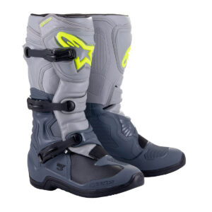 Der Tech 3 Enduro besteht aus innovativem und leichtem Mikrofasermaterial, das flexibel und abriebfest ist. Es verfügt über leichte Mikrofaser im vorderen und hinteren Bereich für zusätzlichen Komfort und synthetisches Material im Zehenbereich für eine hohe Abriebfestigkeit. Der Alpinestars Stiefel hat eine verlängerte PU-Kunststoffgamasche, um das Eindringen von Wasser und Schmutz zu verhindern. Verschiedene TPU-Elemente wie die Wadenschutzplatte, der Protektor, der seitliche Knöchel und die Fersenkappe bieten Halt und Widerstand gegen Stöße. Ein Gamaschenpatch im hinteren Bereich und ein biomechanisches mediales Schienensystem sorgen für zusätzlichen Schutz und Komfort. Der Stiefel hat ein dreifaches Schnallenriemensystem mit einem innovativen Verschlusssystem, das einfach zu bedienen ist. Die Fußschale besteht aus einer einteiligen TPU-gespritzten Zweikomponentenkonstruktion, verstärkt durch einen Metall Schaft und einer Zehenverstärkung. Der Knöchelbereich ist mit weichem Schaumstoff gepolstert. Insgesamt bietet der Stiefel Komfort, Schutz und Anpassungsmöglichkeiten durch das innovative Verschlusssystem. Zertifiziert nach EN 13634:2017.