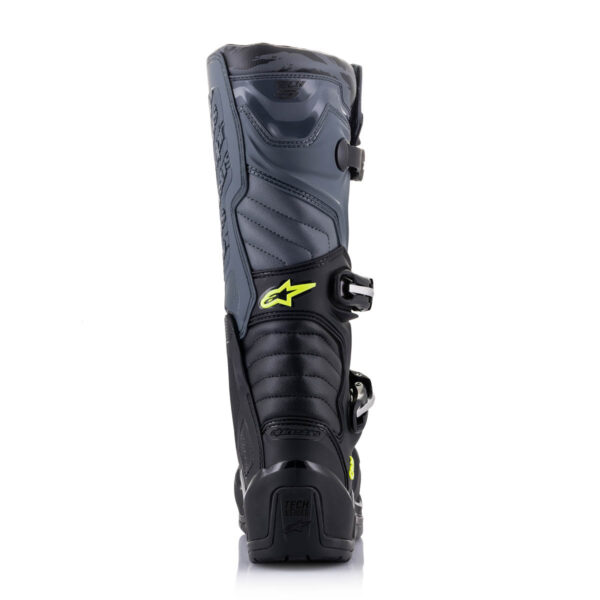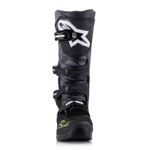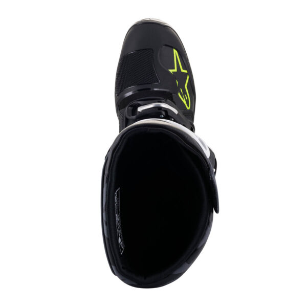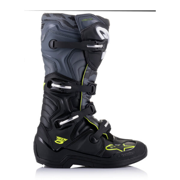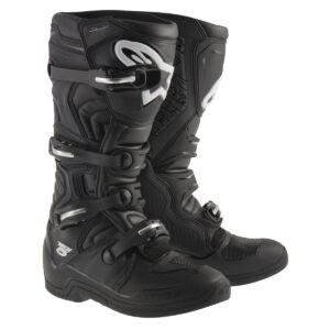 Der Tech 5 ist ein fortschrittlicher Stiefel von Alpinestars für Motocross- und Offroad Fahrer. Er hat eine Multi-Materialien- und Multi-Panel-Konstruktion, die aus innovativen und langlebigen Materialien besteht. Der Stiefel bietet eine hervorragende Unterstützung und Stabilität durch ein biomechanisches Pivot-System im medialen Bereich. Zudem verfügt er über Flex-Zonen für eine leistungsstarke Passform und ein hohes Maß an Komfort. Das Obermaterial besteht aus abriebfester Mikrofaser mit synthetischem Polymer im Zehenbereich. Es ist wasserbeständig und leicht zu pflegen. Der Stiefel hat eine konturierte Schienbeinplatte und eine Polymer-Kernstruktur für mehr Integrität und Abriebfestigkeit. Das medial ausgerichtete biomechanische Pivot-System sorgt für Flexibilität und strukturelle Unterstützung. Insgesamt ist der Tech 5 ein hochwertiger Stiefel, der in Sachen Qualität und Funktionalität den Anforderungen von Motocross- und Offroad Fahrern gerecht wird.