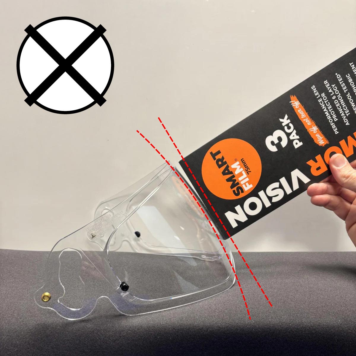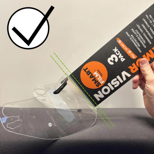 Größenhinweis: Der 75-mm-Smart Film ist so konzipiert, dass er auf die meisten Visiere von Adventure-, Onroad- und Kartinghelme passt.