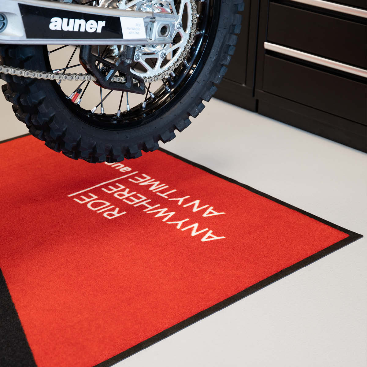 Der auner Motorradteppich ist dein unverzichtbarer Begleiter für Werkstatt, Garage oder Fahrerlager.
