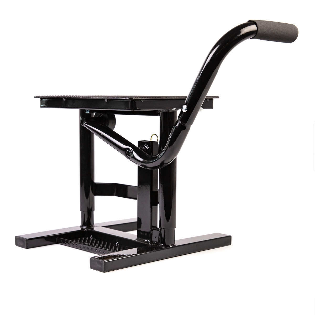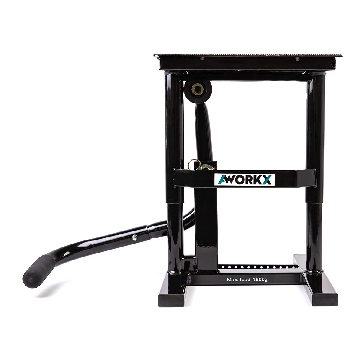 Der AWORKX Motorrad-Hubständer bietet eine großzügige Aufstandsfläche mit einer rutschfesten Gummiauflage von 23,5×29,5 cm. Mit seiner praktischen Schraubenablage und der eleganten schwarzen Pulverbeschichtung vereint er Funktionalität und Ästhetik. Seine Hubhöhe ist 39cm und kann problemlos Motorräder mit einem Gewicht von bis zu 160kg tragen. Dieser Hubständer ermöglicht es dir, sicher und komfortabel in einer angenehmen Arbeitshöhe an deinem Motorrad zu arbeiten.