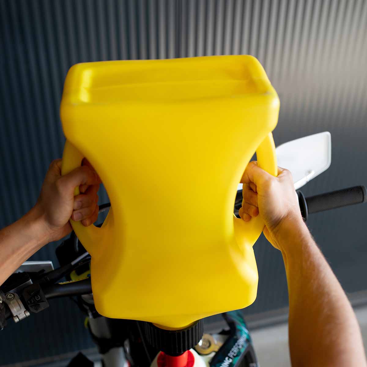 AWORKX Kanister mit Schnelltankventil, stoppt automatisch, wenn der Tank voll ist, kein Adapter für KTM, GASGAS und HUSQVARNA notwendig.