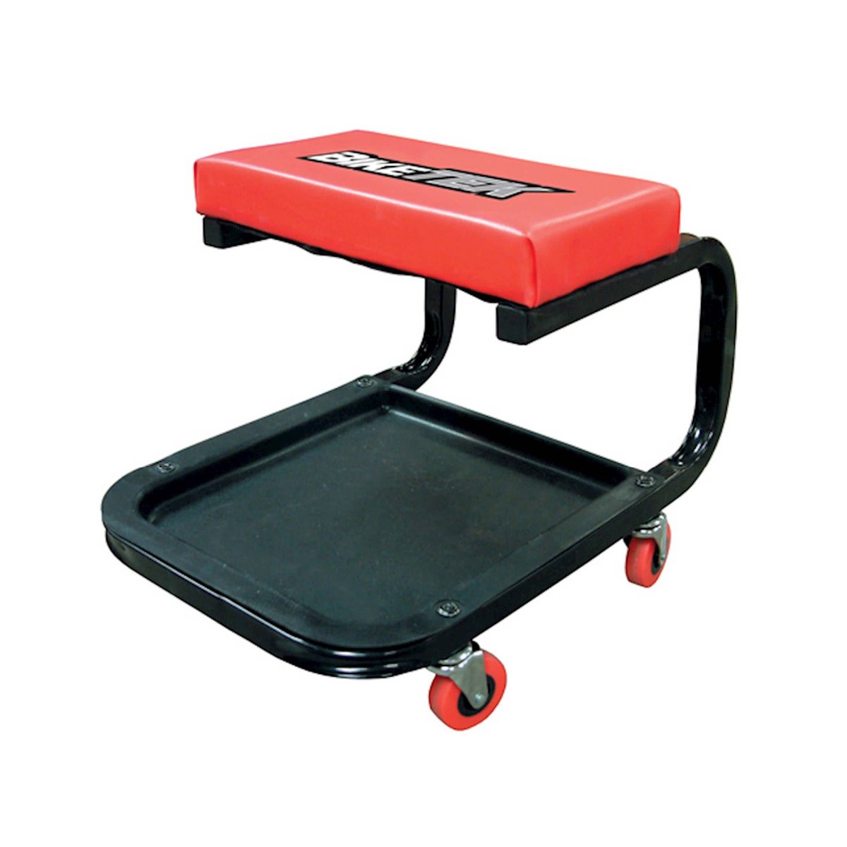 BIKETEK Workshop Creeper Sitz mit optimaler Höhe und 360° Lenkrollen. Einfache Montage.