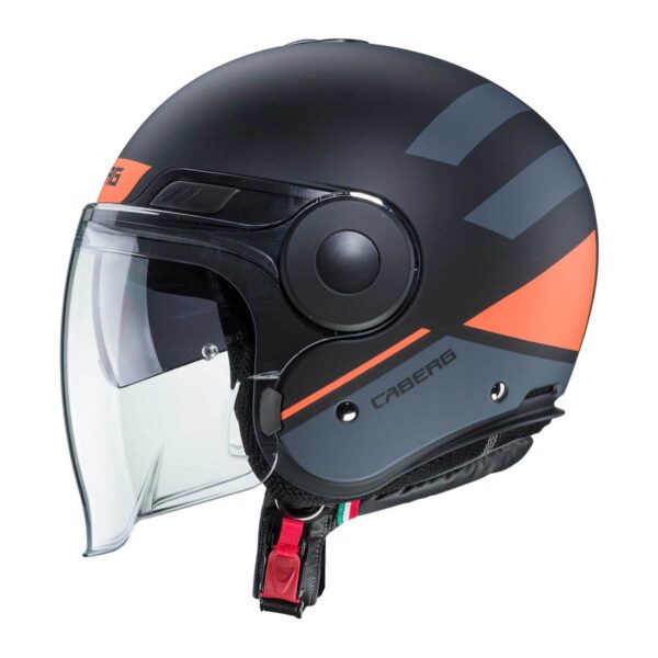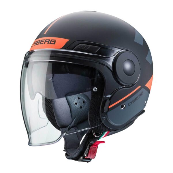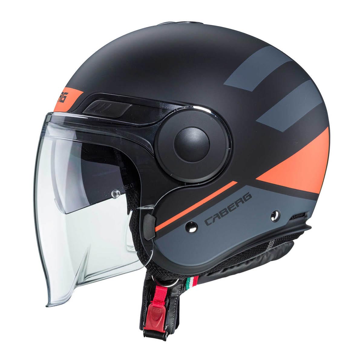 Der Caberg Uptown besteht aus hochwertigen Polycarbonat und hat ein langes langes, klares Visier. Dank der integrierten Sonnenblende hat man auch an sehr sonnigen Tagen eine perfekte Sicht. Belüftungsöffnungen an der Stirn, sowie Entlüftungen am Hinterkopf sorgen für zusätzlichen Luftstrom im Helminneren. Das Komfort Innenfutter ist herausnehmbar und waschbar. Mit dem Mikro-Rasten-Verschluss kann der Caberg Uptown schnell und einfach geöffnet und geschlossen werden. Das Gewicht beträgt in etwa 1150g. ECE 22.05 geprüft.