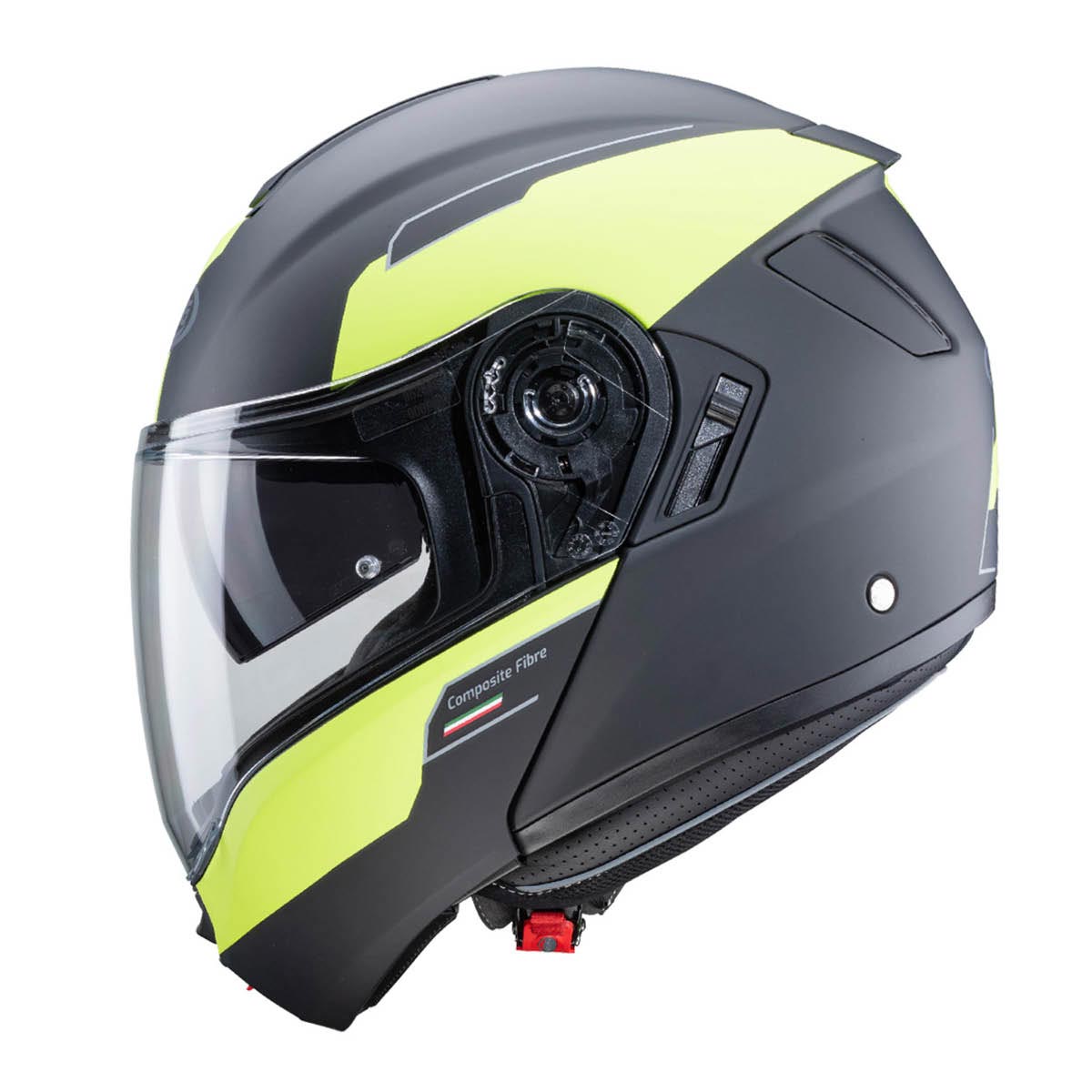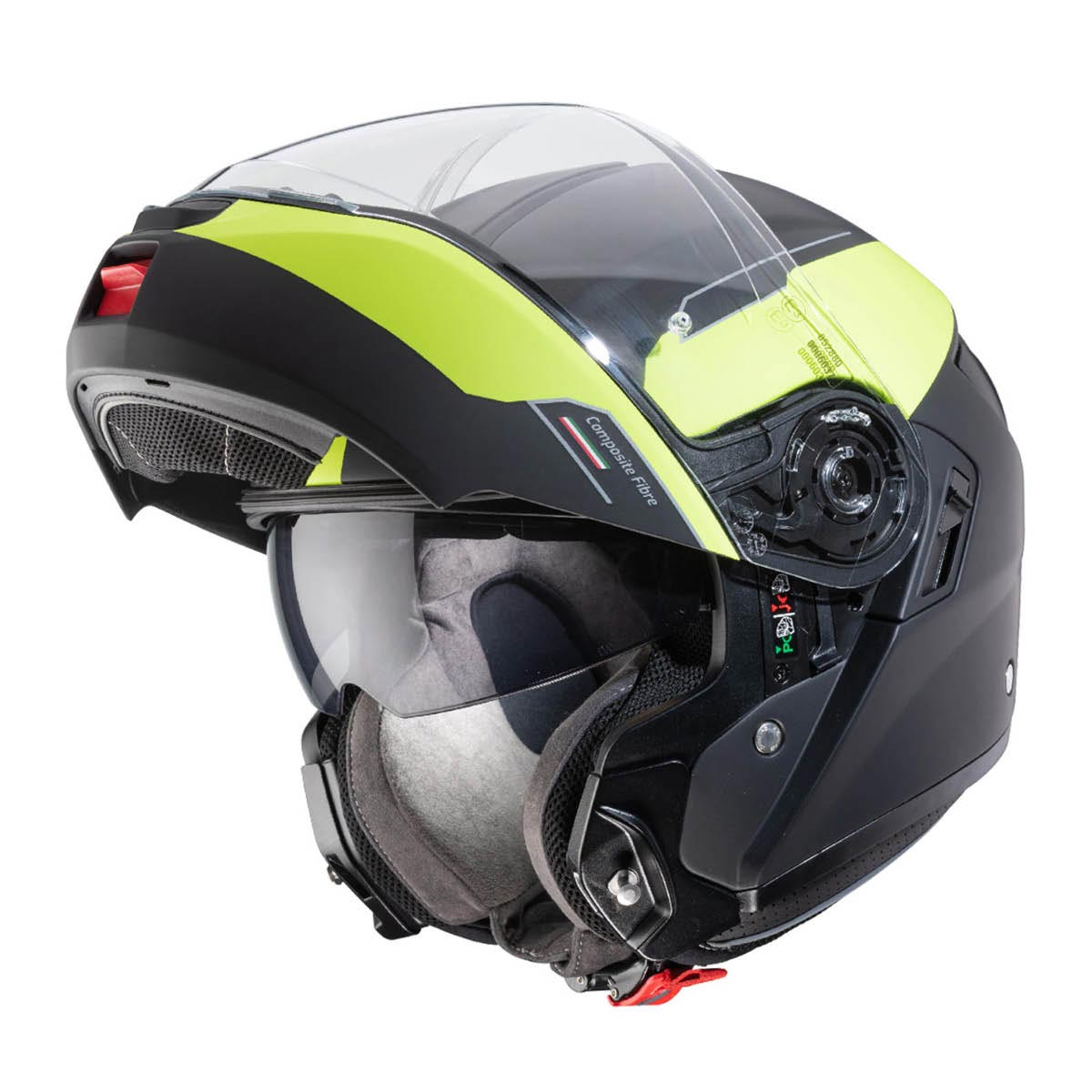 Mit seiner doppelten Homologation kann der Caberg Levo als Jethelm wie auch als Integralhelm gefahren werden. Die Außenschale besteht aus Fiberglas. Das klare Visier sorgt für einen guten Rundumblick. Im Lieferumfang befindet sich auch eine Max Vision Pinlock, die in das Visier integriert werden kann, um ein beschlagen zu verhindern. Damit auch bei hellen Lichtverhältnissen alles gut gesehen werden kann, kann die integrierte Sonnenblende mittels eines Schiebers schnell und einfach bedient werden. Um für eine gute Luftzirkulation zu sorgen, hat der Caberg Levo eine Kinn- sowie Oberkopfbelüftung und am Hinterkopf eine Entlüftung. Das Komfort Innenfutter kann herausgenommen und gewaschen werden. Der Mikro-Rasten-Verschluss hält den Helm sicher in seiner Position. Das Gewicht des Horus beträgt in etwa 1450g. ECE 22.05 geprüft.