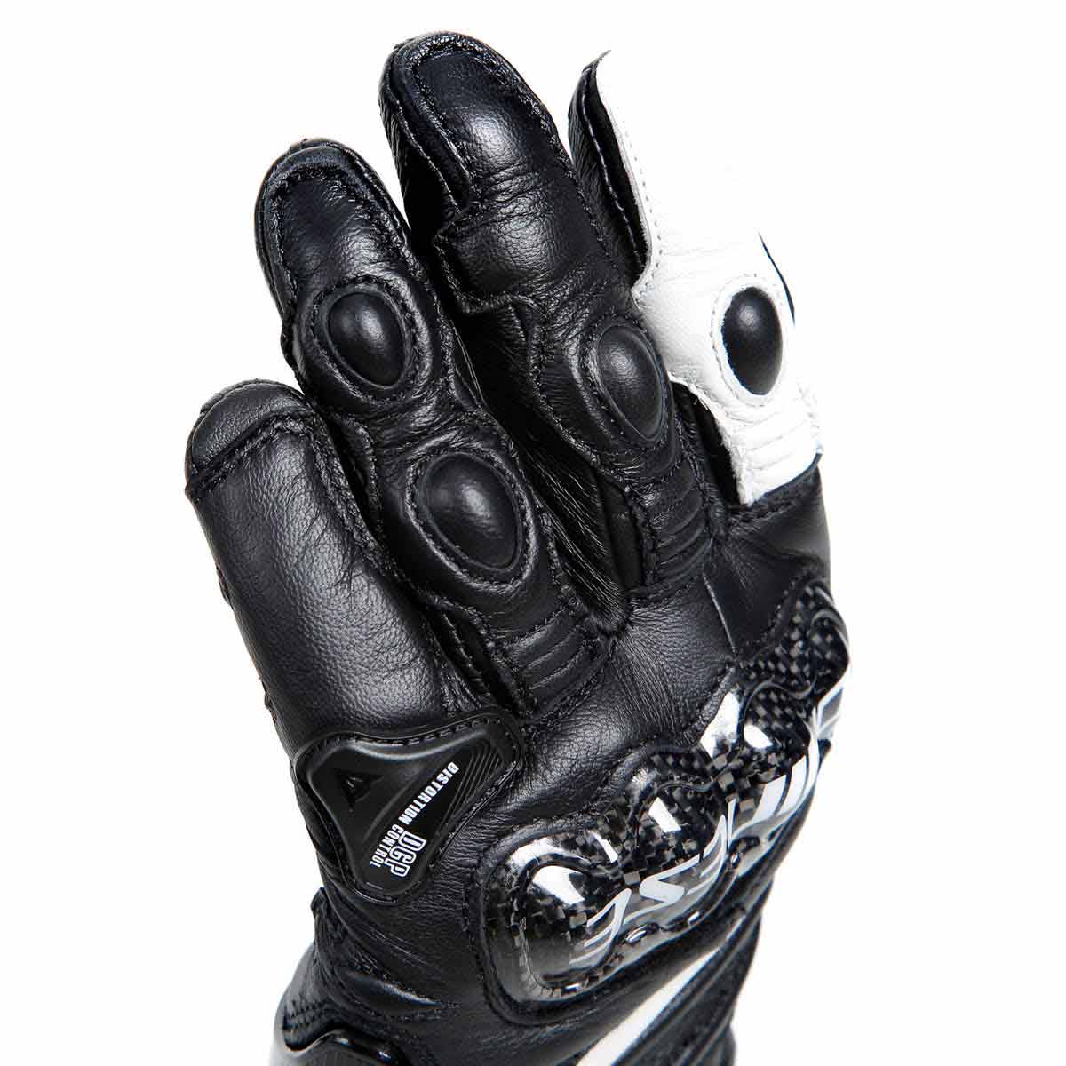 Die Motorradhandschuhe Dainese Carbon 4 Long Lady sind zertifizierte lange Handschuhe, die ein Höchstmaß an Schutz garantieren und für die Bedürfnisse der weiblichen Handform entwickelt wurden. Dank der Verwendung von technischen Materialien, die aus dem Rennsport stammen, wie z. B. der Konstruktion aus Ziegenleder und den ergonomischen Knöchelprotektoren aus Carbon, sind sie Ausdruck der höchsten Sicherheitsstandards von Dainese. Sie verfügen über das DCP-System zum Schutz des kleinen Fingers, einen verstärkten Schaft und Fingernähte auf der Innenseite für ein Maximum an Robustheit und Komfort.