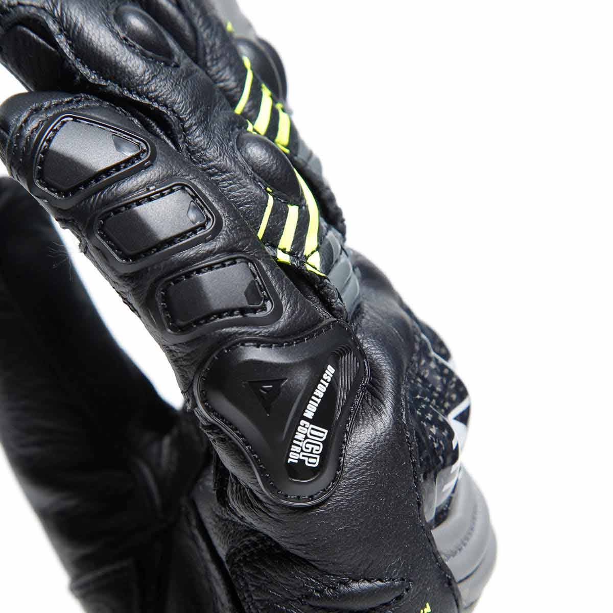 Die Racing-Handschuhe aus Leder Dainese Druid 4 sind der Ausdruck höchster Schutzstandards, entwickelt für maximale Leistung auf der Rennstrecke und auf der Straße. Sicherheit und Ergonomie auf Motorrad-WM-Niveau werden durch den vorgeformten, thermogeformten Schaft, die Carboneinsätze an den Knöcheln und am Handrücken sowie den thermoplastischen Schutz am kleinen Finger gewährleistet. Einsätze aus Polyurethan an Handfläche und Fingergelenken garantieren maximale Widerstandsfähigkeit, die 4-Wege-Elastizität gewährleistet hervorragenden Komfort und eine stets perfekte Passform.