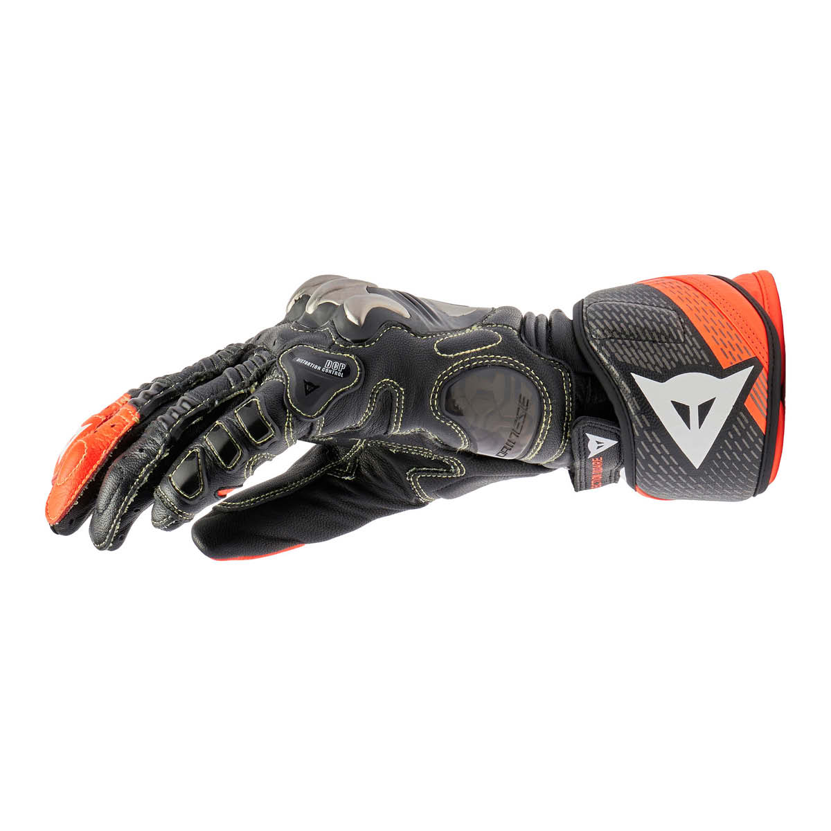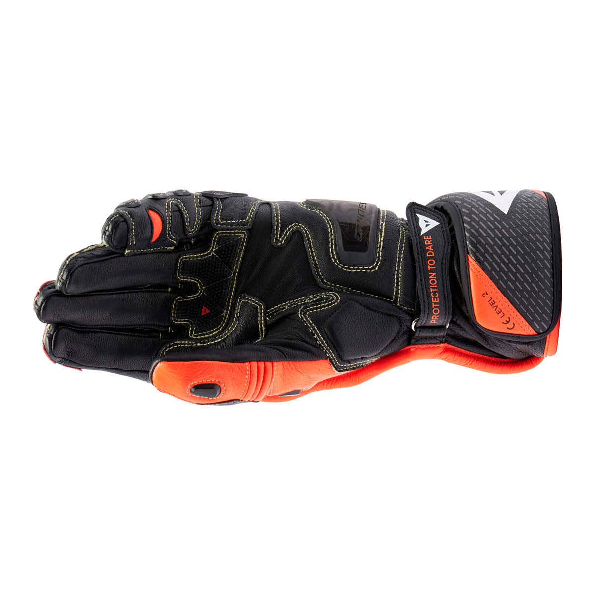 Die Full Metal 7 Gloves sind Motorradhandschuhe, die für maximale Leistung und Schutz entwickelt wurden. Gefertigt aus strapazierfähigem Ziegenleder und ausgestattet mit schützenden Pro-Tek-Einsätzen aus Titan an den Knöcheln und aus Kevlar an Handfläche, Fingern und Handrücken sowie mit Verstärkungen am kleinen Finger und am Kahnbein. Die Full Metal 7 Gloves wurden für den Schutz des Handrückens und der Fingerknöchel entwickelt und bieten einen extrem hohen Aufprallschutz, hervorragende Gleiteigenschaften dank Titan und ein ausgezeichnetes Maß an Komfort und Beweglichkeit dank des co-injizierten elastischen Gelenks. Komfort, Leichtigkeit und Sensibilität werden bei diesem professionellen Handschuh, der von den MotoGP™-Champions verwendet wird, maximiert, damit sich der Fahrer auf seine Leistung konzentrieren kann. Die vorgekrümmte Konstruktion des Bündchens und der Finger, die Elastikeinsätze an Handrücken, Fingern und an der Basis der Fingerglieder sowie die neue Form der Knöchel bieten ein hohes Maß an Komfort und Ergonomie und erhöhen die Fahrpräzision. Als perfekte Verschmelzung aus ikonischem Design und den hohen technologischen Standards von Dainese sind die Full Metal 7 Gloves die neueste Weiterentwicklung des Top-Rennhandschuhs, der nun die Level-2-Zertifizierung besitzt. Die Konstruktion der Full Metal 7 Gloves garantiert eine perfekte Verbindung mit den Dainese Rennanzügen.