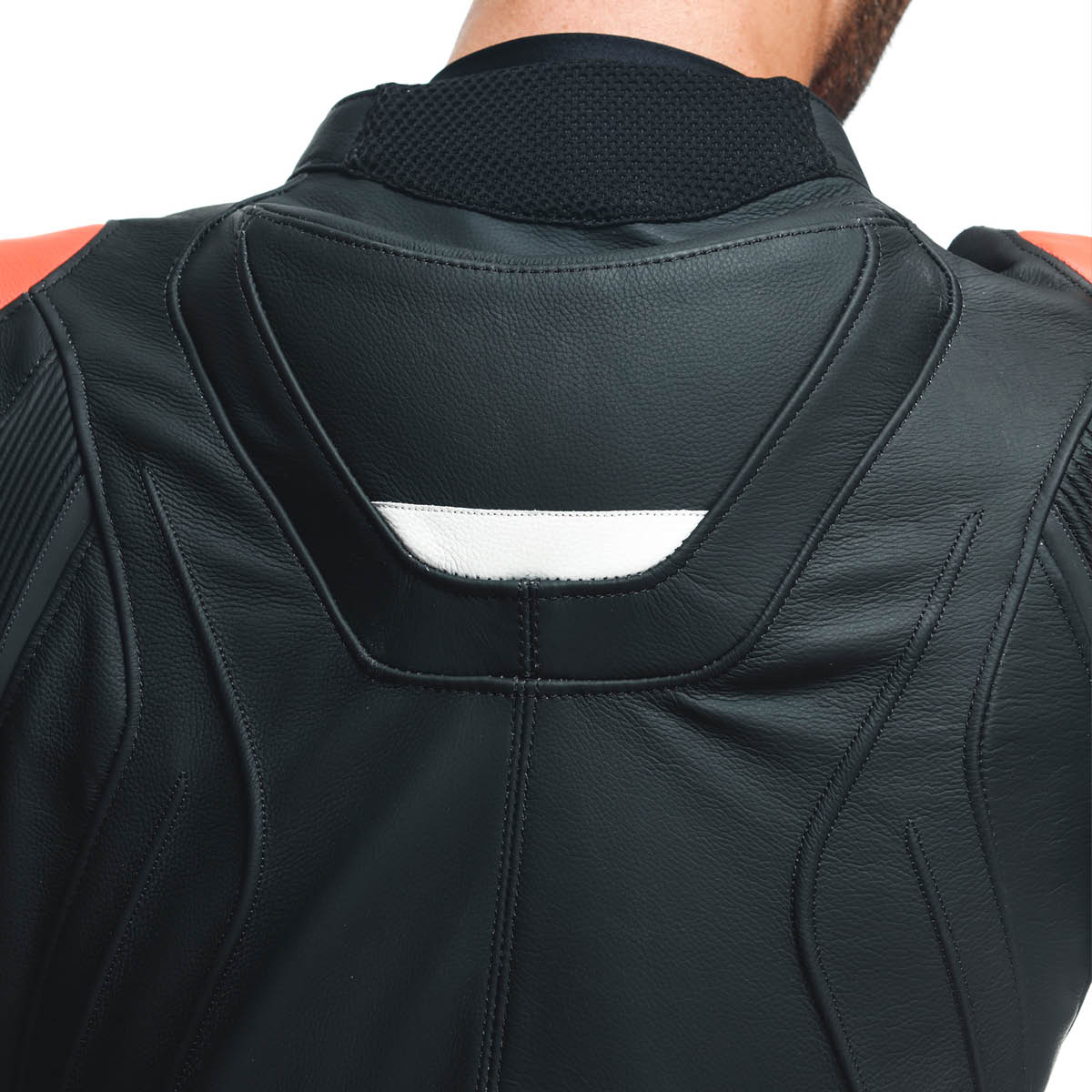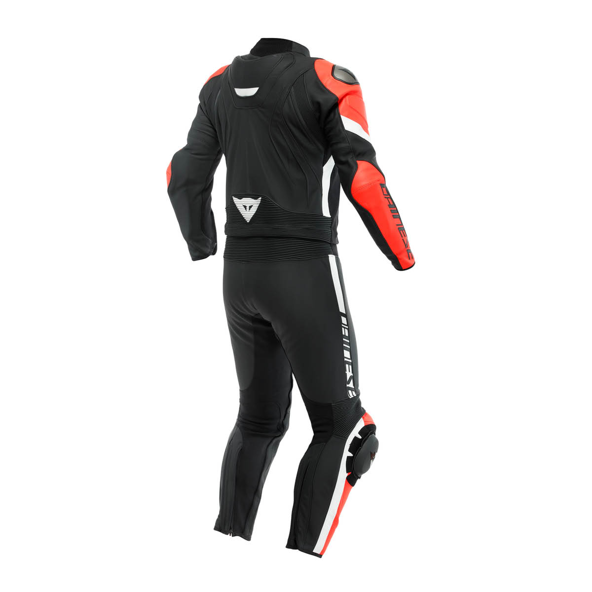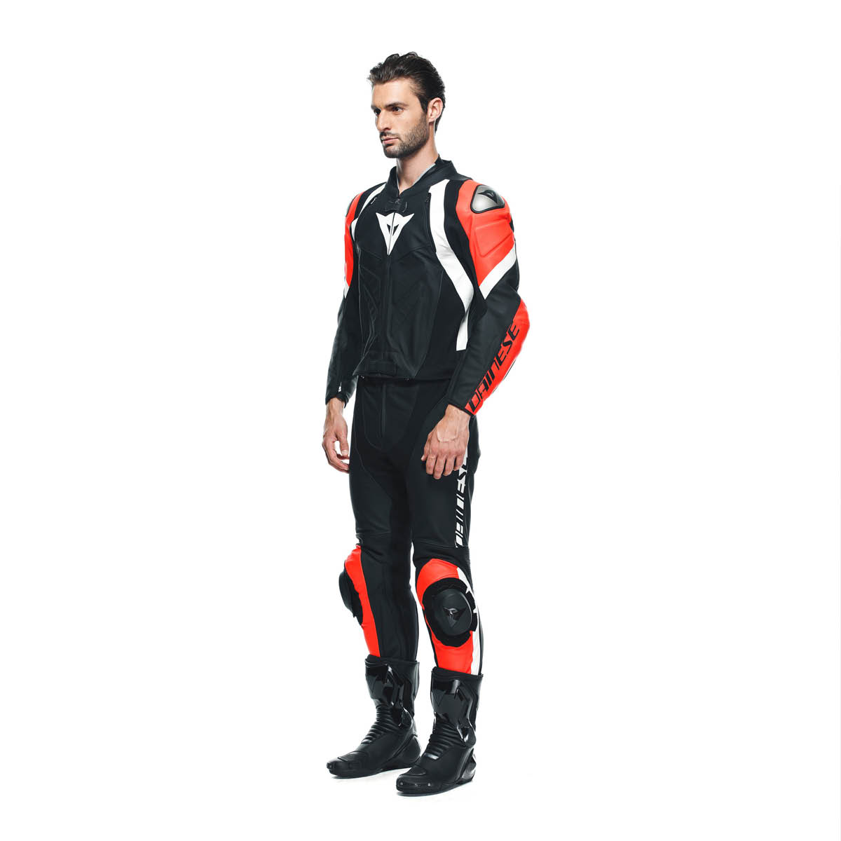 Der zweiteilige Motorradanzug Avro 4 aus edlem Tutu-Rindsleder, bestehend aus einer Jacke und einer Hose, die durch einen widerstandsfähigen Reißverschluss rund um die gesamte Taille verbunden sind. Optimiert für das Fahren auf der Straße – geeignet für alle Geländearten. Der maximale Schutz wird durch Protektoren aus Verbundmaterial an Knien, Ellbogen und Schultern und weiche Pro-Shape 2.0-Protektoren an der Hüfte gewährleistet und kann durch Innentaschen zum Einsetzen von Brustprotektoren weiter erhöht werden. Avro 4 ist mit abnehmbaren und austauschbaren Slidern an den Knien und austauschbaren Aluminiumplatten an den Schultern ausgestattet: eine besondere Technologie von Dainese, die das Rutschen im Falle eines Sturzes unterstützt und begünstigt und so gefährliche Überschläge aufgrund von Haftung auf dem Asphalt verhindert. Der Höcker an den Schultern und im Nacken hat eine aerodynamische Funktion. Für zusätzlichen Komfort verfügt der zweiteilige Anzug über breite Einsätze aus S1-Stretchgewebe an der Arminnenseite, an den Leisten und der Beinrückseite, Einsätze aus Microelastic 2.0-Leder am Rücken und an den Armen, die die Bewegungsfreiheit erhöhen und gleichzeitig den Schutz von Leder bieten, sowie verstellbare Lüftungsschlitze mit Reißverschluss an der Brust. Die Aerodynamik und die Stabilität des Stiefels können durch die patentierte Doppelreißverschluss-Konstruktion am Bein Saum maximiert werden, die den unteren Teil verbreitert und es ermöglicht, den IN-Stiefel dank Klettverschluss innen zu fixieren. EN 17092 AA zertifiziert
