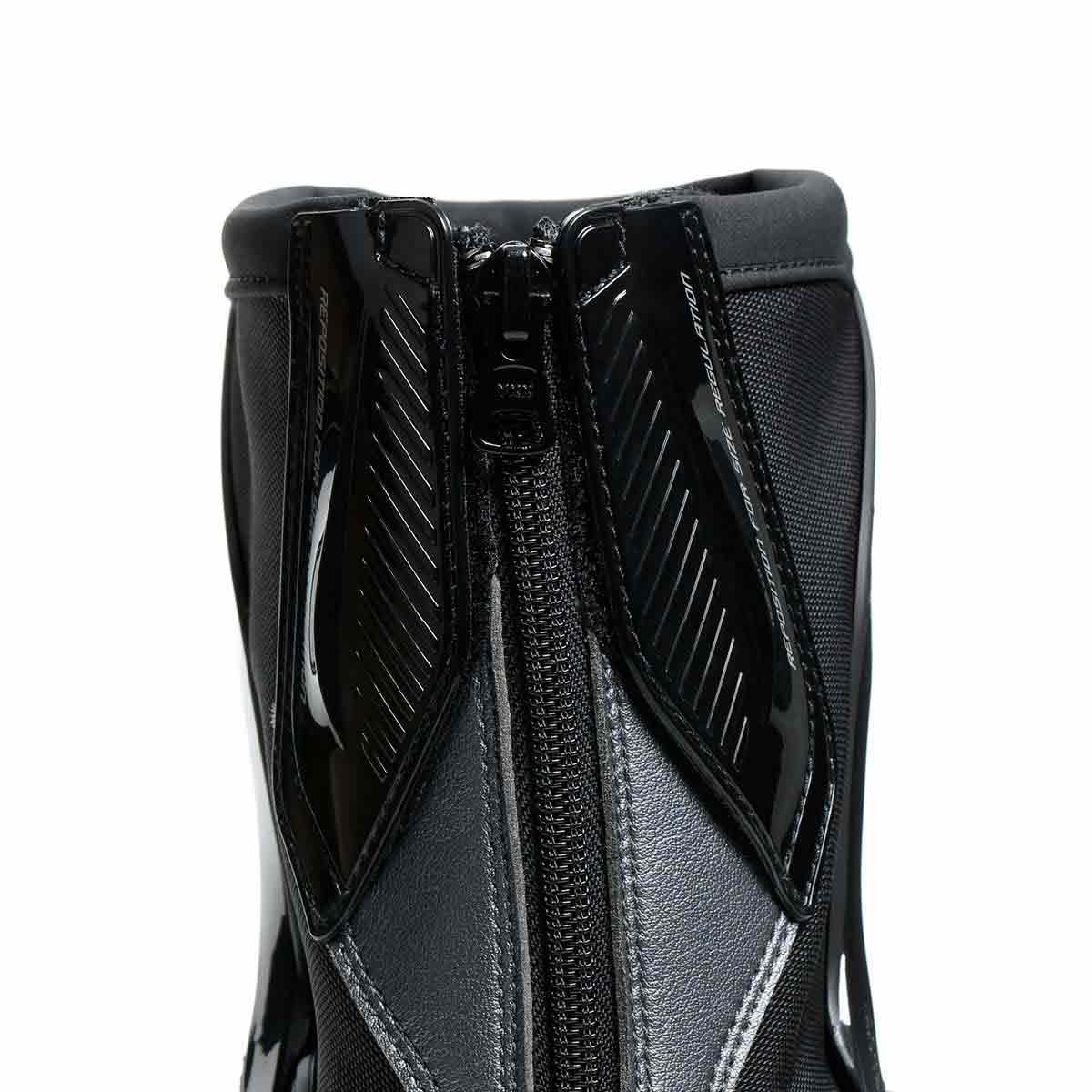 Dieser Rennstiefel ist aus Mikrofaser und D-Stone™-Gewebe gefertigt und mit TPU-Einsätzen mit hoher Haftfähigkeit ausgestattet. Die austauschbaren Magnesium-Slider, das schützende Nylon an Schaft, Ferse und Spitze und das exklusive D-Axial-System aus TPU zum Schutz vor der Torsion des Fußes garantieren Komfort und Schutz. Ein echter Champion im Hinblick auf Leichtigkeit und Performance, dank des internen Rückhaltebands, des Schnellverschlusssystems und der Luftführung, der Magnesiumeinsätze an der Außenseite und den Fersen. Zusätzlich sorgen die flexiblen Gelenkverbindungen für größeren Komfort auch nach dem Absteigen vom Motorrad. Sicherheit und Vertrauen, um sich auf jeder Rennstrecke zu verwirklichen. EN 13634 zertifiziert