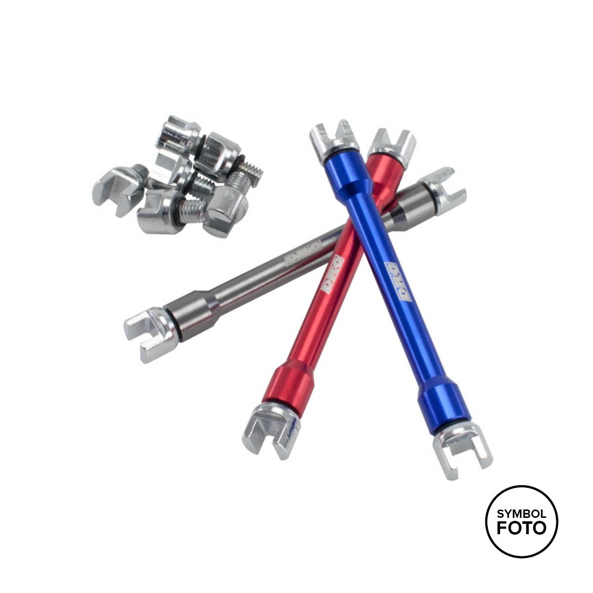 DRC Speichenschlüssel PRO mit 8 wechselbaren CNC gefrästen 7075A Alu-Aufsätzen für Speichen-Nippel 5,6/5,8/6,0/6,2/6,4/6,6/6,8/7,0 Tip.