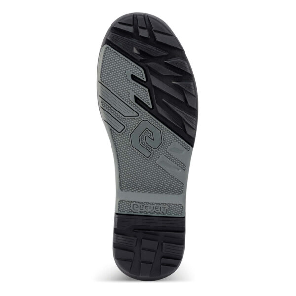 Die geklebte Gummi-Sohle mit profiliertem Design ist austauschbar, garantiert hohe Griffigkeit auf jedem Terrain und komplettiert diesen nach strengsten europäischen Sicherheitsvorschriften zertifizierten Stiefel.
