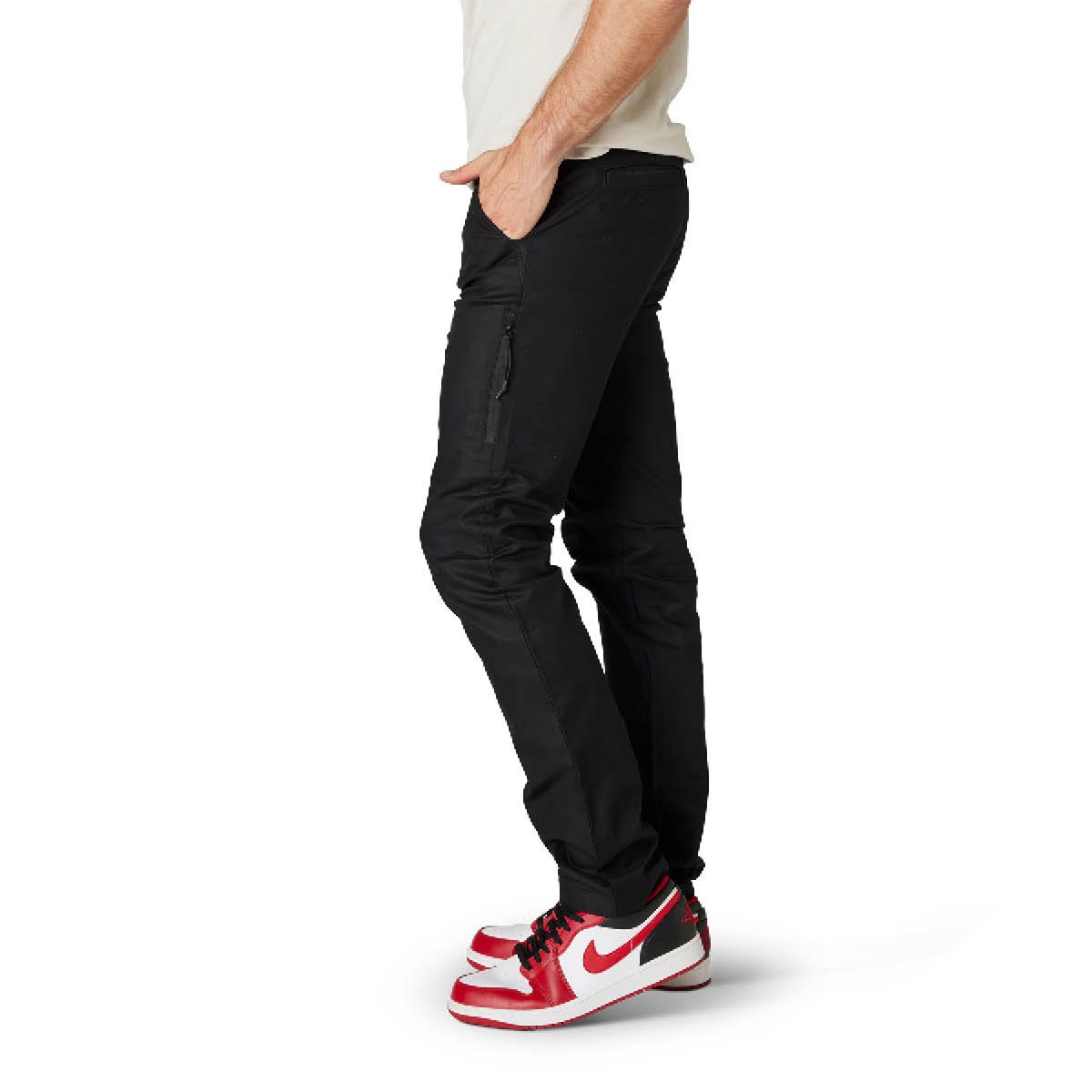 Sie zeichnet sich durch klassische Chino-Taschen und strapazierfähiges Stretch-Material aus, das sich jeder Bewegung des Körpers anpasst. Die schmale Passform bietet grenzenlosen Komfort und uneingeschränkte Bewegungsfreiheit, wobei der Look dennoch stilvoll bleibt.