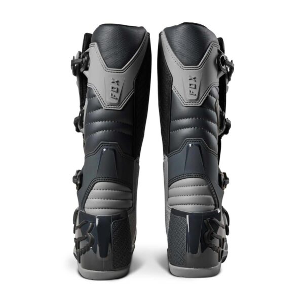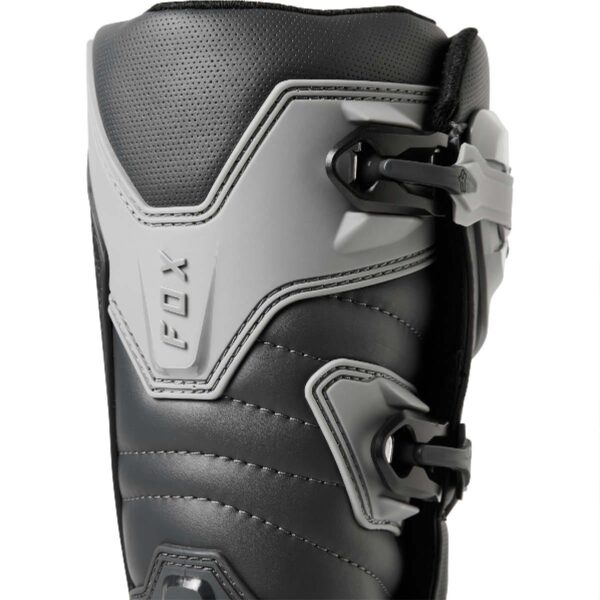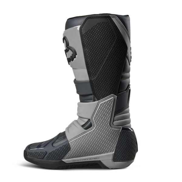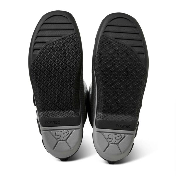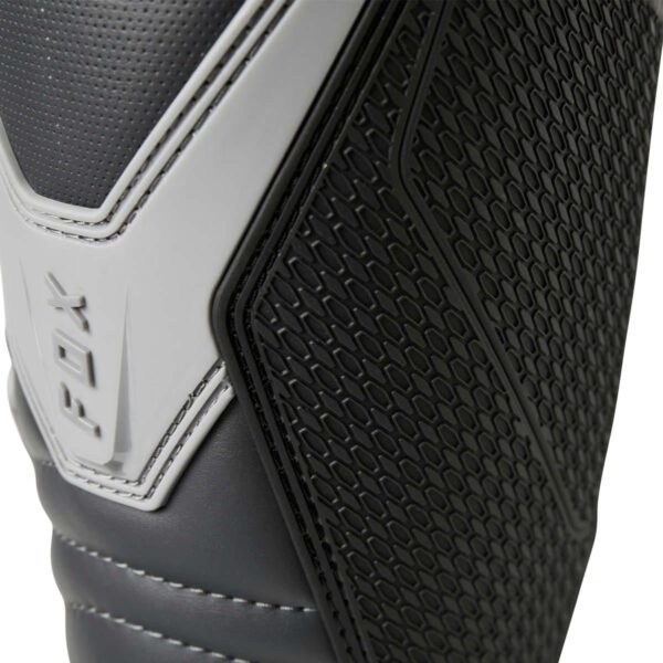 Das Obermaterial aus Mikrofaser-Kunstleder bietet überragenden Komfort, beste Passform, Flexibilität und Strapazierfähigkeit. Für besten Schutz sorgen die TPU-Schienbeinplatte, Knöchel-, Zehen- und Fersenkappen, der Burnguard und der Wadenschutz. Air-Mesh-Futter sorgt für Komfort und Atmungsaktivität. Das neue verstellbare Verschlusssystem mit vier Schnallen bietet einen bequemen und sicheren Sitz. Interne Einlegesohle aus Verbundwerkstoff für Stabilität und zur Unterstützung von den Zehen bis zur Ferse. Die exklusive FOX Positac™-Gummimischung bietet verbesserte Haltbarkeit und beispiellosen Grip auf der Außensohle.