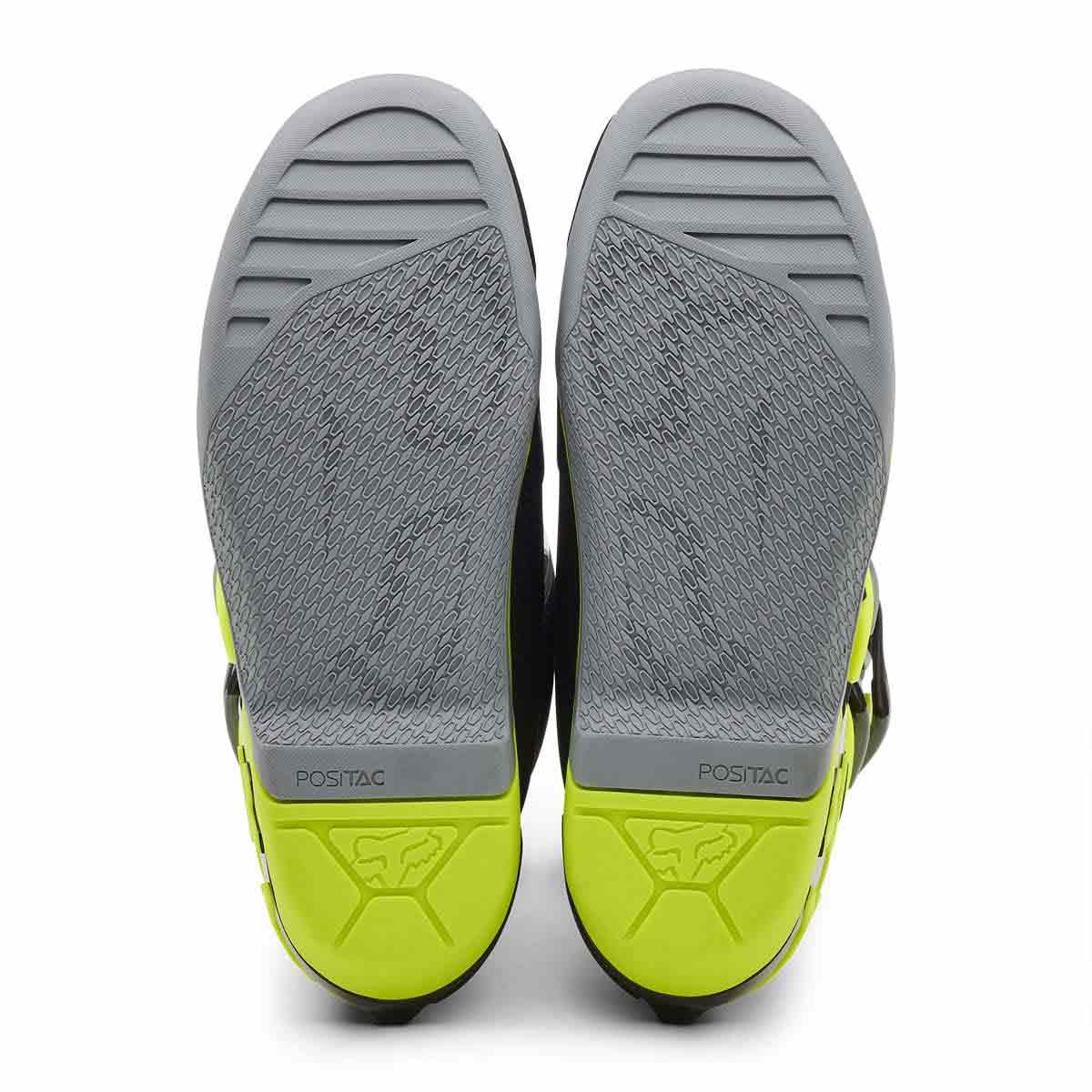 Das Obermaterial aus Mikrofaser-Kunstleder bietet überragenden Komfort, beste Passform, Flexibilität und Strapazierfähigkeit. Für besten Schutz sorgen die TPU-Schienbeinplatte, Knöchel-, Zehen- und Fersenkappen, der Burnguard und der Wadenschutz. Air-Mesh-Futter sorgt für Komfort und Atmungsaktivität. Das neue verstellbare Verschlusssystem mit vier Schnallen bietet einen bequemen und sicheren Sitz. Interne Einlegesohle aus Verbundwerkstoff für Stabilität und zur Unterstützung von den Zehen bis zur Ferse. Die exklusive FOX Positac™-Gummimischung bietet verbesserte Haltbarkeit und beispiellosen Grip auf der Außensohle.