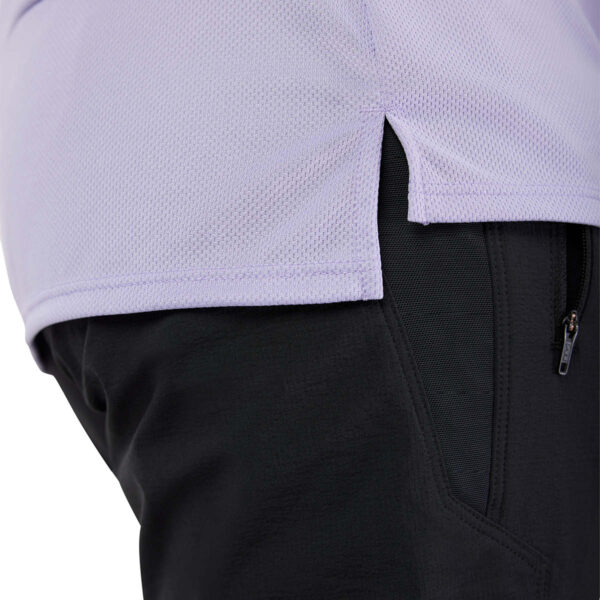 Das feuchtigkeitsableitende Polyester-Mesh-Gewebe leitet den Schweiß vom Körper ab und hält dich trocken und komfortabel