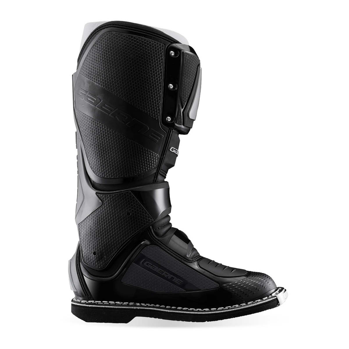 Der Gaerne SG12 ist der Ultimative Motocross Stiefel. Um eine Überdehnung oder Überkompression zu verhindern bietet das DSPS (Dual Stage Pivot System) einen sehr guten seitlichen Halt. Die Schienbeinplatte ist aus PU gespritzt, während die Fersenkappe für einen besseren Schutz und höheren Komfort sorgt. Der Zehenbereich wurde so geformt, dass man stets ein gutes Gefühl beim Schalten hat. Für einen optimalen Halt sorgen die vier leichten und austauschbaren Verschlussschnallen. Der Klettverschluss am oberen Bund des Stiefels sorgt für eine sichere Passform. Die hitzebeständige Polsterung an der Innenseite trägt ebenso zu einem guten Halt bei. Der vordere Teil des SG12 ist für eine gute Belüftung ausgelegt, was die Luftzirkulation im Inneren fördert. Die robuste Gaerne Goodyear Welted Sohle sorgt für eine langlebige Sohlenkonstruktur. Der SG12-Stiefel ist CE-zertifiziert gemäß EN 13634:2017 und der Verordnung EU 2016/425.