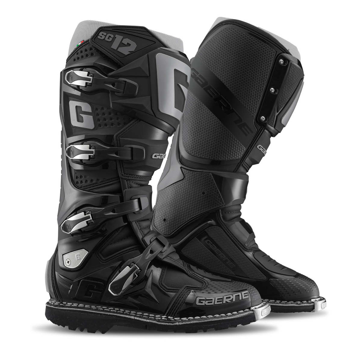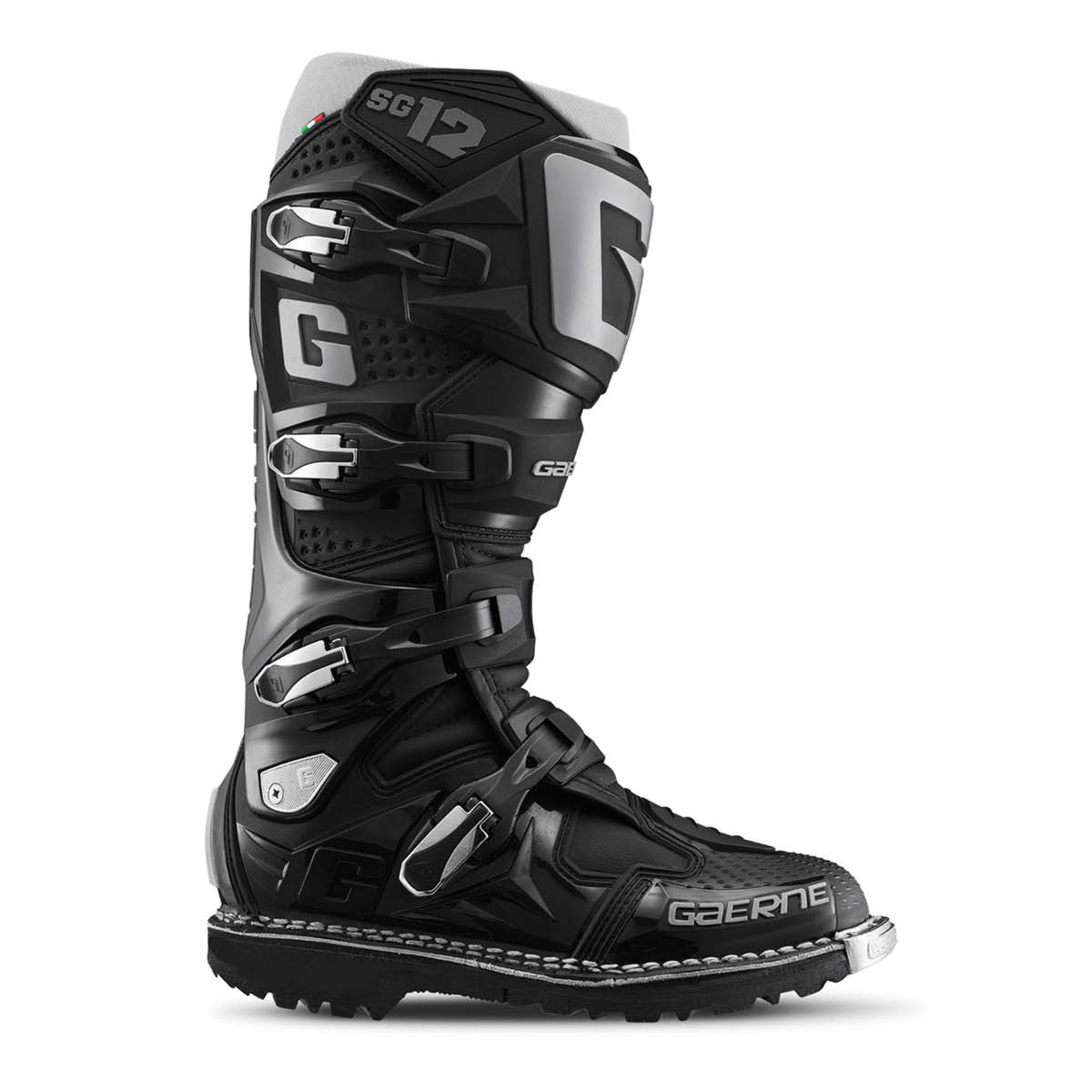 Der GAERNE SG12 Enduro wurde speziell für die anspruchsvolle Disziplin des Enduro Fahrens zugeschnitten. Um eine Überdehnung oder Überkompression zu verhindern bietet das DSPS (Dual Stage Pivot System) einen sehr guten seitlichen Halt. Die Schienbeinplatte ist aus PU gespritzt, während die Fersenkappe für einen besseren Schutz und höheren Komfort sorgt. Der Zehenbereich wurde so geformt, dass man stets ein gutes Gefühl beim Schalten hat. Für einen optimalen Halt sorgen die vier leichten und austauschbaren Verschlussschnallen. Der Klettverschluss am oberen Bund des Stiefels sorgt für eine sichere Passform. Die hitzebeständige Polsterung an der Innenseite trägt ebenso zu einem guten Halt bei. Der vordere Teil des SG12 ist für eine gute Belüftung ausgelegt, was die Luftzirkulation im Inneren fördert. Die robuste Gaerne Goodyear Welted Sohle sorgt für eine langlebige Sohlenkonstruktur. Der SG12 Enduro-Stiefel ist CE-zertifiziert gemäß EN 13634:2017 und der Verordnung EU 2016/425.