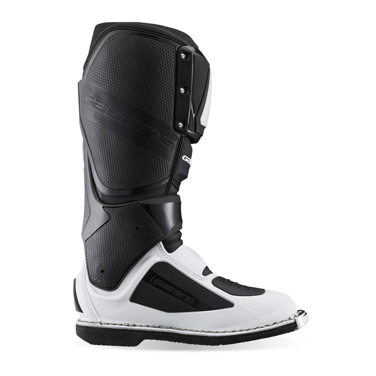Der Gaerne SG12 ist der Ultimative Motocross Stiefel. Um eine Überdehnung oder Überkompression zu verhindern bietet das DSPS (Dual Stage Pivot System) einen sehr guten seitlichen Halt. Die Schienbeinplatte ist aus PU gespritzt, während die Fersenkappe für einen besseren Schutz und höheren Komfort sorgt. Der Zehenbereich wurde so geformt, dass man stets ein gutes Gefühl beim Schalten hat. Für einen optimalen Halt sorgen die vier leichten und austauschbaren Verschlussschnallen. Der Klettverschluss am oberen Bund des Stiefels sorgt für eine sichere Passform. Die hitzebeständige Polsterung an der Innenseite trägt ebenso zu einem guten Halt bei. Der vordere Teil des SG12 ist für eine gute Belüftung ausgelegt, was die Luftzirkulation im Inneren fördert. Die robuste Gaerne Goodyear Welted Sohle sorgt für eine langlebige Sohlenkonstruktur. Der SG12-Stiefel ist CE-zertifiziert gemäß EN 13634:2017 und der Verordnung EU 2016/425.