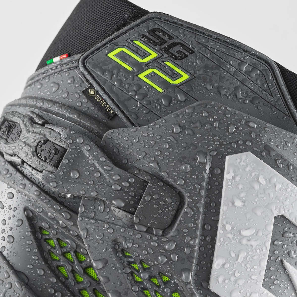 Der SG22 ist der Stiefel für Fahrer die den Wettbewerb dominieren wollen. Das Gaerne Dual Stage Pivot System 1.0 unterstütz den Knöchel und schränkt Hyperextention, Hyperflexion und die seitliche Bewegung ein. Belüftungsöffnungen im Vorderbereich und 3D Kanäle tragen zu einer optimalen Luftzirkulation, Feuchtigkeitsabfuhr und Wärmeableitung bei. Danke der superleichten Aluminium Schnallen, welche mehrere Verstellmöglichkeiten bieten, kann der Stiefel sehr gut angepasst werden. Die hitzebeständige Polsterung an der Innenseite trägt zu einem guten Halt bei. Innen ist der Schuh mit der GORE-TEX® Extended Membrane ausgestattet, die für ihre außergewöhnliche Wasserdichtigkeit und Atmungsaktivität bekannt ist und dafür sorgt, dass Ihre Füße bei allen Wetterbedingungen trocken und komfortabel bleiben. Im Innenbereich des SG22 stabilisiert der Memory Foam 1.0 den Fuß und passt sich der Knöchelform an. So wird eine nahtlose Verbindung mit dem Schuh eingegangen. Die Gaerne Enduro-Sohle ist mit einer speziellen Mischung gefertigt, die außergewöhnlichen Grip auf den Stöcken bietet. Diese maßgeschneiderte Sohlenkonstruktion verbessert die Leistung und bietet zuverlässige Traktion und optimale Funktionalität für die Anforderungen des Endurofahrens, insbesondere in nassem und schlammigem Gelände. Der SG22 GORE-TEX® ENDURO Stiefel ist CE-zertifiziert gemäß EN 13634:2017 und der Verordnung EU 2016/425.