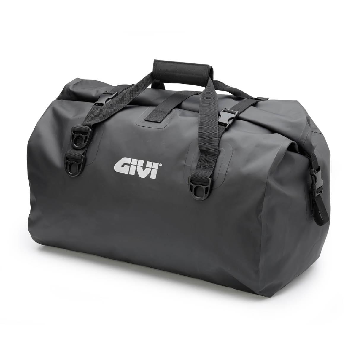 GIVI EASY BAG Waterproof Gepäckrolle mit Gurt besteht aus schwarzer Hochfrequenz verschweißten PVC Tarpaulin 500D und ist IP65 undurchlässig. Um Wasserdichtigkeit zu erreichen, muss der Verschluss 3-4x eingerollt und dann fixiert werden. Dank des Handgriffs und der gepolsterten Schultergurte kann die Tasche einfach und bequem transportiert werden.