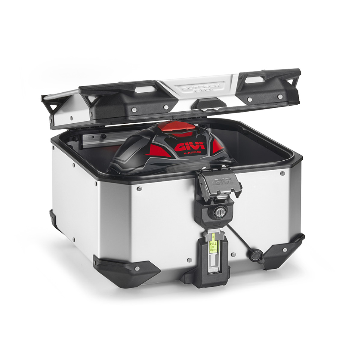 Die GIVI OUTBACK EVO-Linie der TREKKER Aluminiumkoffer wurde um die neue Version aus eloxiertem Aluminium erweitert. Dies erhöht die Oberflächenhärte des Aluminiums und macht es widerstandsfähiger gegen Verschleiß und Kratzer. Die Eloxierung verleiht ihm außerdem ein hochwertiges Aussehen. Zur Information: die Koffer werden ohne Schloss verkauft und muss daher unbedingt mit dem SMART SECURITY LOCK-Kit ergänzt werden!