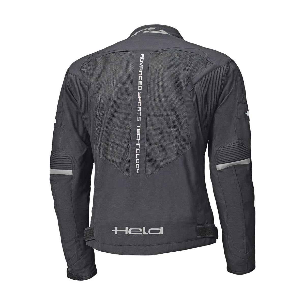 Die HELD Jacke Sonic II ist eine Meshjacke aus Airguard 400 D. Das Futter besteht aus 3D Air-Mesh Einsatz am Rücken, atmungsaktives Netzfutter. Held Clip-In Technologie. Handytasche innen, 1 Innentasche und 2 Außentaschen. Frontreißverschluss auch als ACS (Air-Vent) benutzbar. Frontreißverschluss auch als ACS (Air-Vent) benutzbar, luftdurchlässige Mesh-Einsätze an Armen, Rücken und im Frontbereich. Stretch-Einsätze an Ellbogen und Schultern. Verstellung der Armweiten möglich. Softkragen. Hüftweitenverstellung. Zertifiziert nach EN 17092. Soft-Protektoren an Ellbogen und Schultern, zertifiziert nach EN 1621-1:2012. Rückenprotektor ist nachrüstbar. Reflex-Einsätze. Verbindungsreißverschluss.