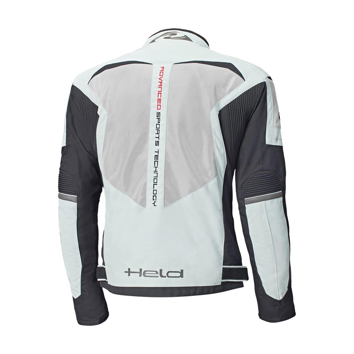 Die HELD Jacke Sonic II ist eine Meshjacke aus Airguard 400 D. Das Futter besteht aus 3D Air-Mesh Einsatz am Rücken, atmungsaktives Netzfutter. Held Clip-In Technologie. Handytasche innen, 1 Innentasche und 2 Außentaschen. Frontreißverschluss auch als ACS (Air-Vent) benutzbar. Frontreißverschluss auch als ACS (Air-Vent) benutzbar, luftdurchlässige Mesh-Einsätze an Armen, Rücken und im Frontbereich. Stretch-Einsätze an Ellbogen und Schultern. Verstellung der Armweiten möglich. Softkragen. Hüftweitenverstellung. Zertifiziert nach EN 17092. Soft-Protektoren an Ellbogen und Schultern, zertifiziert nach EN 1621-1:2012. Rückenprotektor ist nachrüstbar. Reflex-Einsätze. Verbindungsreißverschluss.