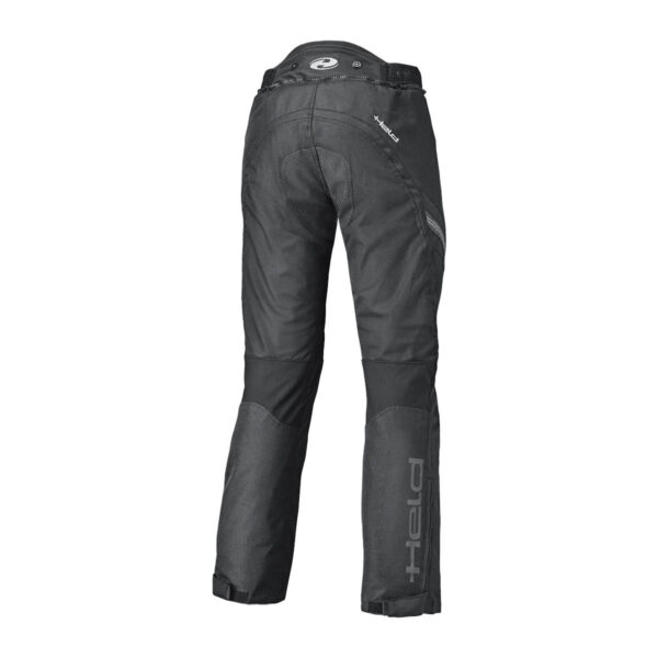 Für optimalen Sitz und Komfort sorgen der Taillengürtel, Reißverschluss und Klettverschluss am Beinabschluss sowie ein Känguru-Antirutschleder am Gesäß. Die Hose verfügt zudem über Belüftungsreißverschlüsse und vier Außentaschen. Durch den Verbindungsreißverschluss kann die Hose auch mit anderen Held-Jacken verbunden werden.