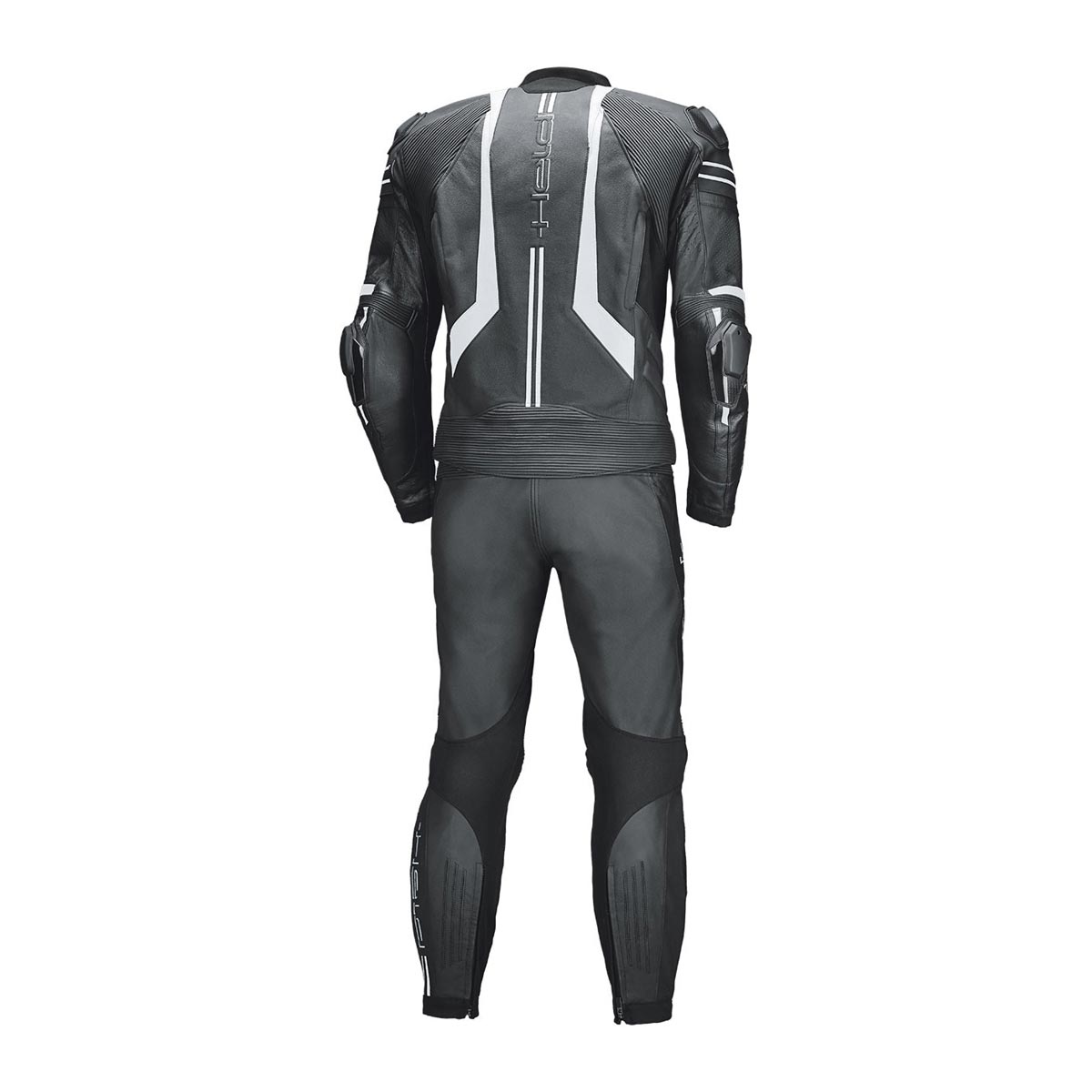 Der Zweiteilige Lederkombi von Held ist ein Mix aus Känguru- und Rindleder. In den 2 Außen- sowie 2 Innentaschen können Kleinigkeiten verstaut werden. Der Frontreißverschluss der Street-Rocket Pro kann auch als Held ACS (Air-Vent System) benutzt werden. Belüftungsreißverschlüsse sowie das perforierte Leder sorgen für eine gute Luftzirkulation. Spezielle Stretcheinsätze am Innenarm, im Schritt und an der Wade, sowie Lederstretch-Einsätze im Rücken, an der Schulter und über dem Knie sorgen für einen hohen Tragekomfort. Dank des Held Protector Adjustment System an Ellbogen und Knie können die Protektoren verstellt werden. Durch die Clip-In Technologie können ein Thermofutter, ein Windabweiser oder eine Regenjacke in den Zweiteiler integriert werden. Die Hartplastik Verstärkung am Ellbogen kann schnell und einfach getauscht werden. Die Soft-Protektoren an Schulter, Ellbogen und Knie sind zertifiziert nach EN 1621-1:2012. Optional können auch noch ein Rückenprotektor, ein zweiteiliger Brustprotektor und Hüftprotektor nachgerüstet werden. Der Held Street-Rocket Pro Lederkombi ist als Schutzausrüstung für Motorradfahrer zertifiziert nach EN 17092.