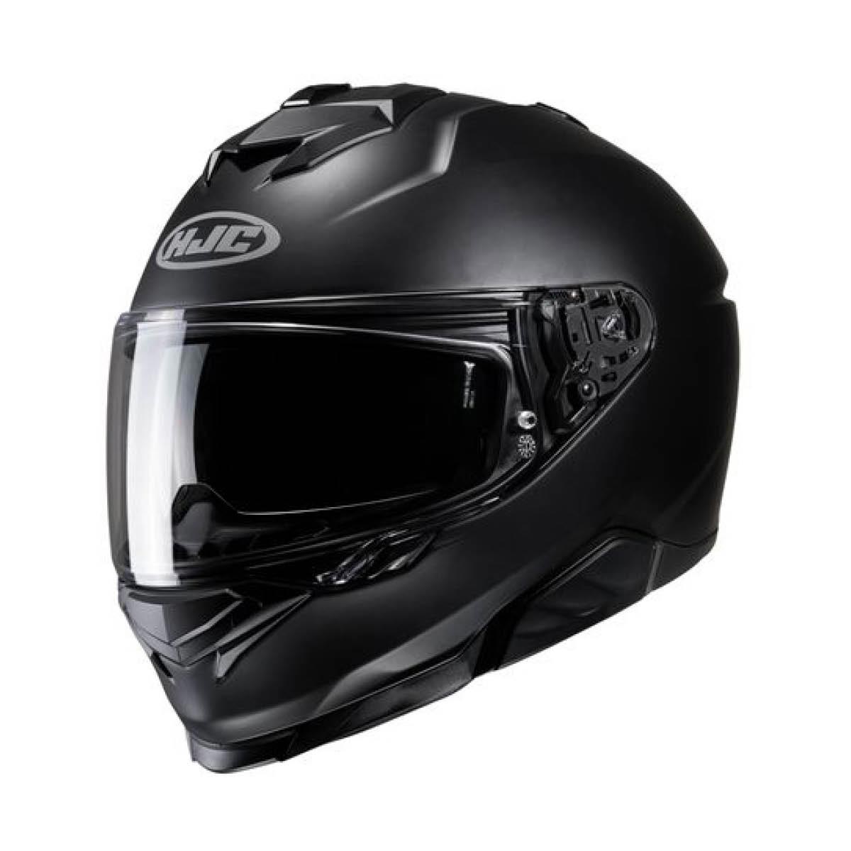 Der HJC Helm i71 Solid besteht aus einer Polycarbonat-Verbundschale und zeichnet sich durch ein leichtes Gewicht, hervorragende Passform und verbesserten Komfort aus. ACS – Advanced Channeling Lüftungssystem. Das Pinlock vorbereitete HJ-38 Visier bietet einen 99% UV-Schutz, Anti-Kratz Beschichtung. Die Visierverriegelung mit Druckentriegelung bietet mehr Sicherheit und Komfort. Sonnenblende hat 3 verstellbare Stufen. Innenmaterial ist feuchtigkeitsabweisend und schnell trocknend. Wangen- und Kopfpolster sind herausnehmbar und waschbar. SMART HJC 21B & 50B sind vorbereitet (optional erhältlich). ECE 22.06.
