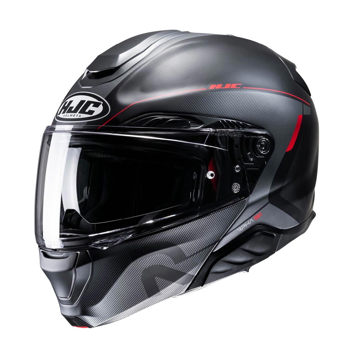 Der HJC Helm RPHA 91 ist aus Premium Integrated Matrix/P.I.M. EVO mit Carbon-Aramid-Hybrid und Naturfasern, geringes Gewicht, verbesserter Komfort und verbesserte Stoßfestigkeit. Aerodynamisches Design mit 5 Einlässen und 7 Auslässen für eine Frischluftzufuhr. Pinlock vorbereitetes HJ-37 Visier bietet 99%igen UV-Schutz mit Anti-Kratz Beschichtung. Die Sonnenblende ist 3-stufig verstellbar. Stark getöntes Visier ist montiert. Antibakterielles Gewebe, Kopf- und Wangenpolster sind herausnehmbar und waschbar. ECE 22.06
